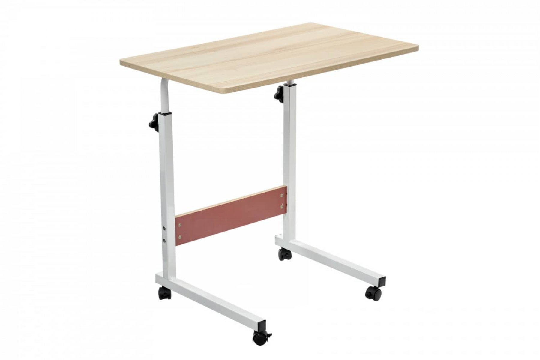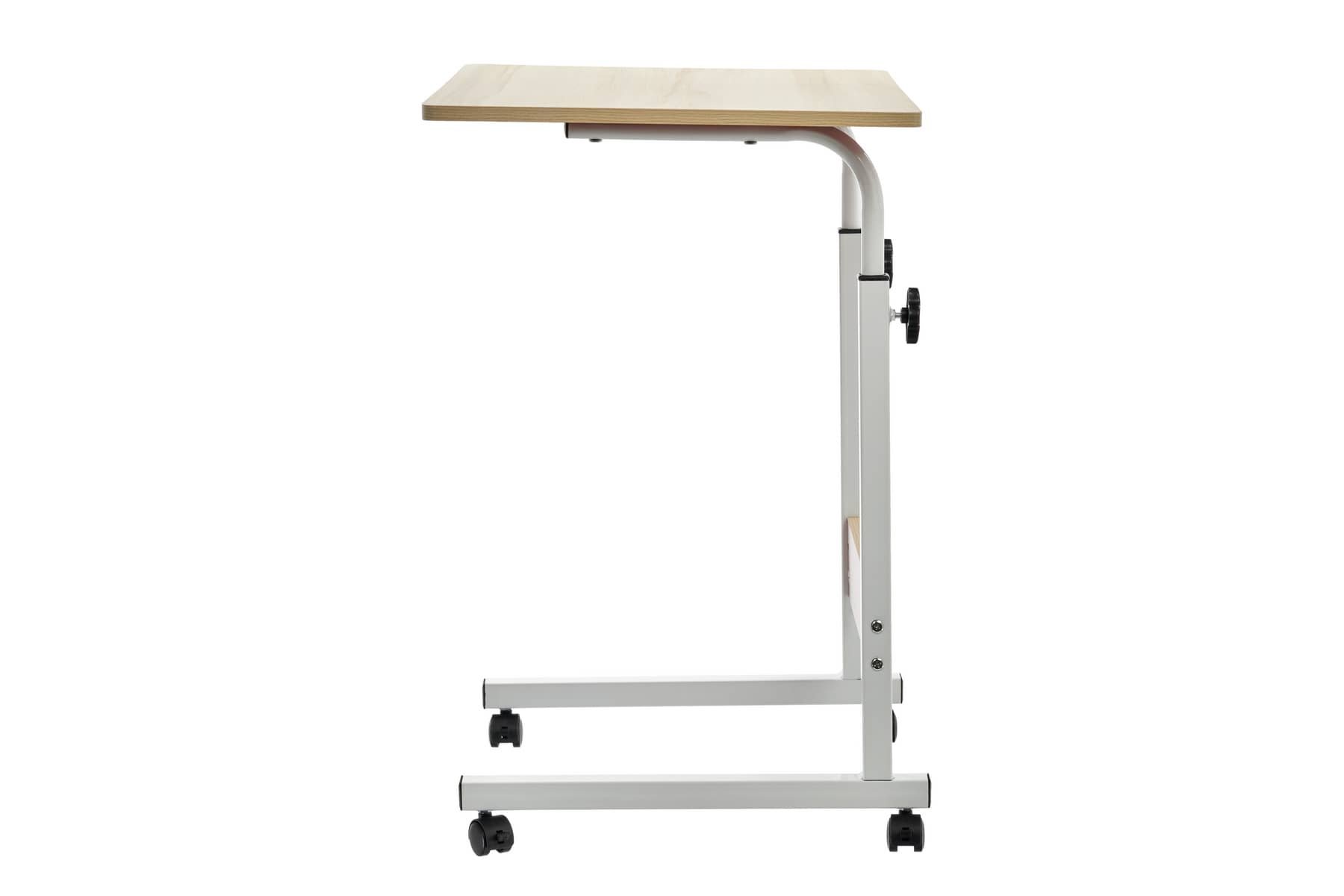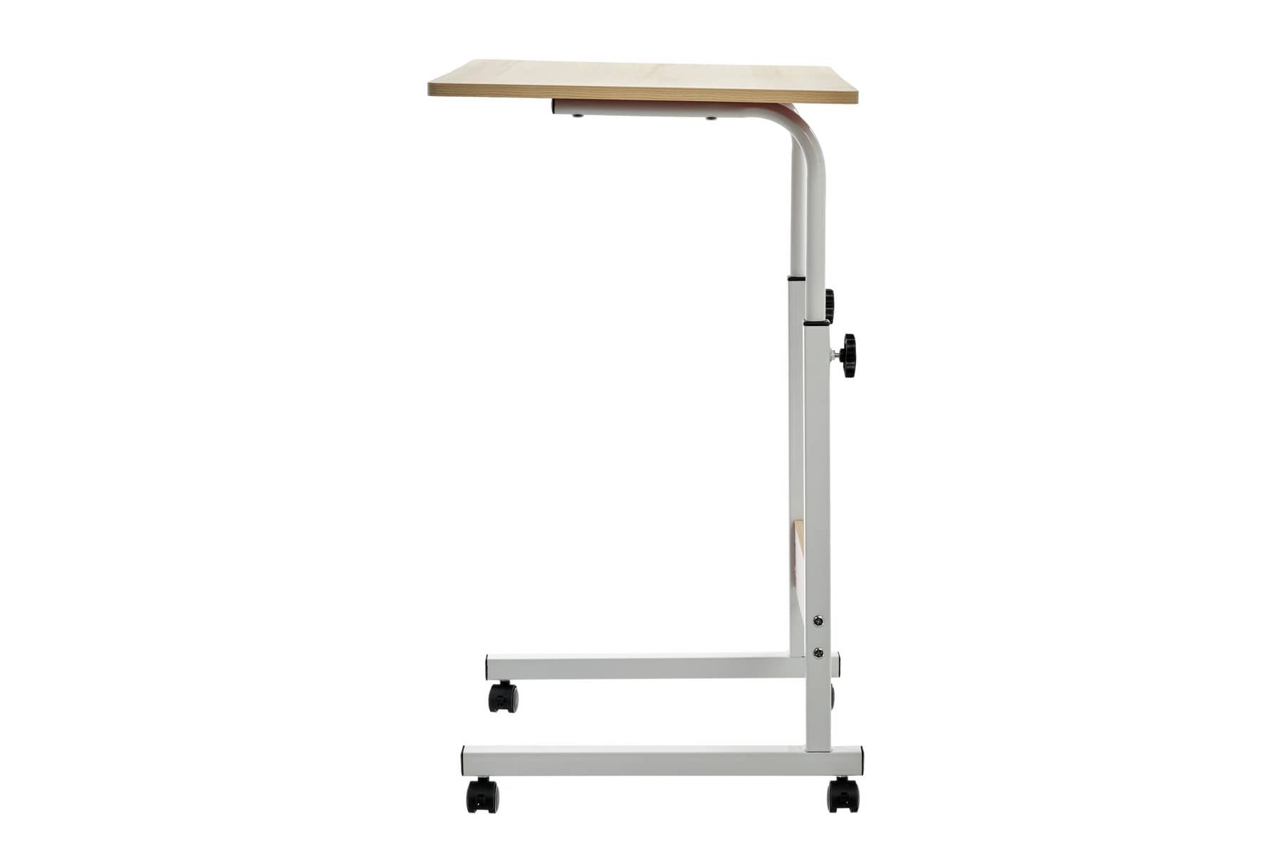 Стол многофункциональный на колесах, 60x40 см, «РОЛЛ», 2 ножки, регул.высота, мдф, металл, св. дерево, белый