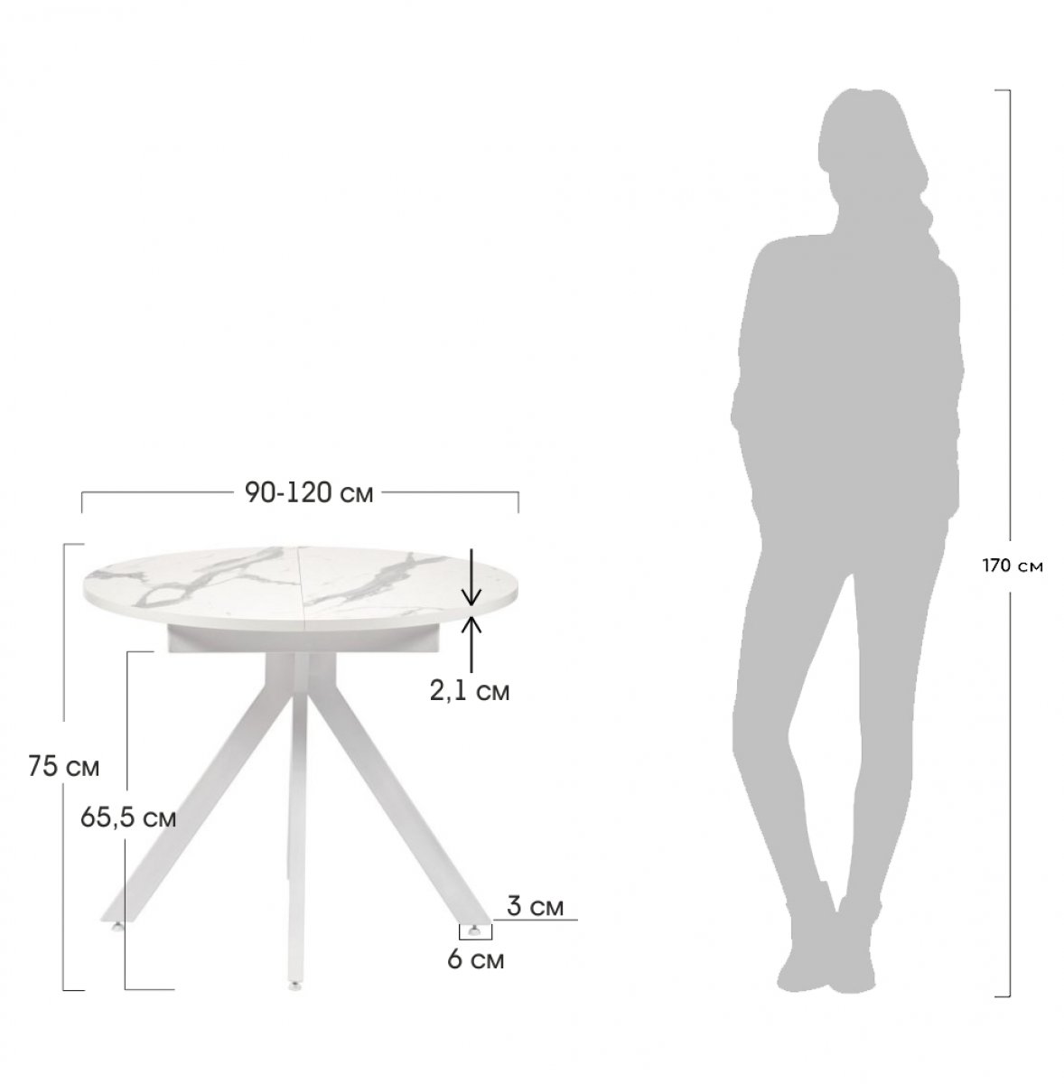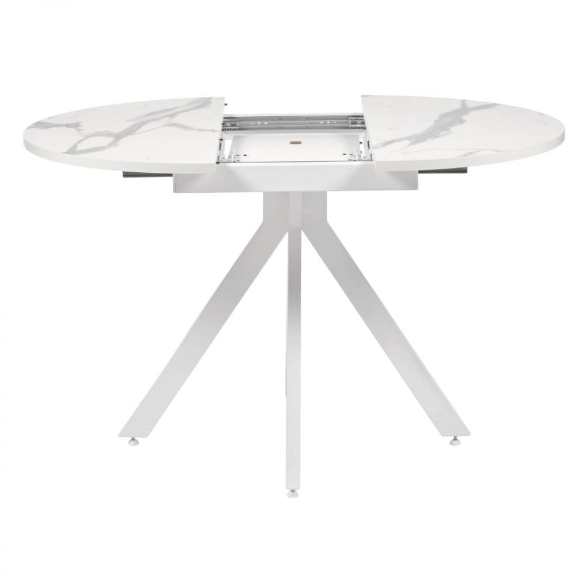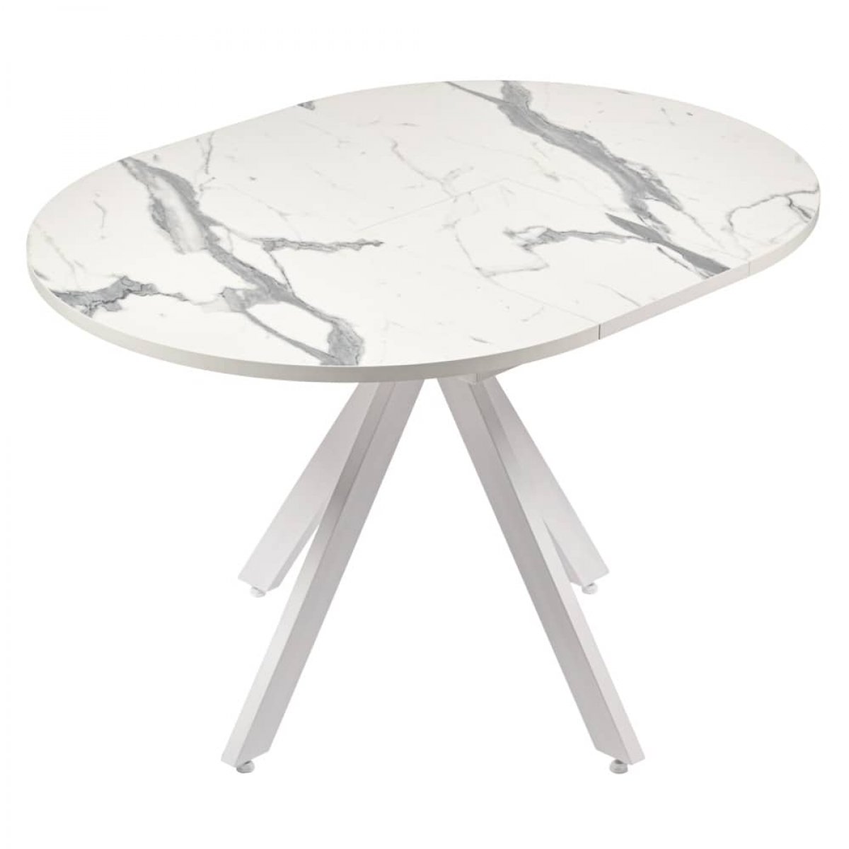 Стол Rudolf круглый раскладной 90-120x90x75см, белый мрамор, белый
