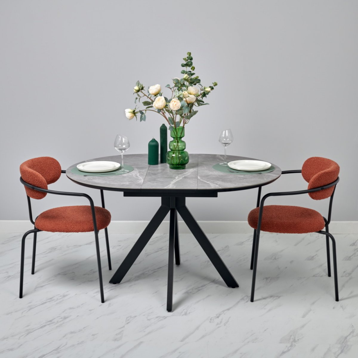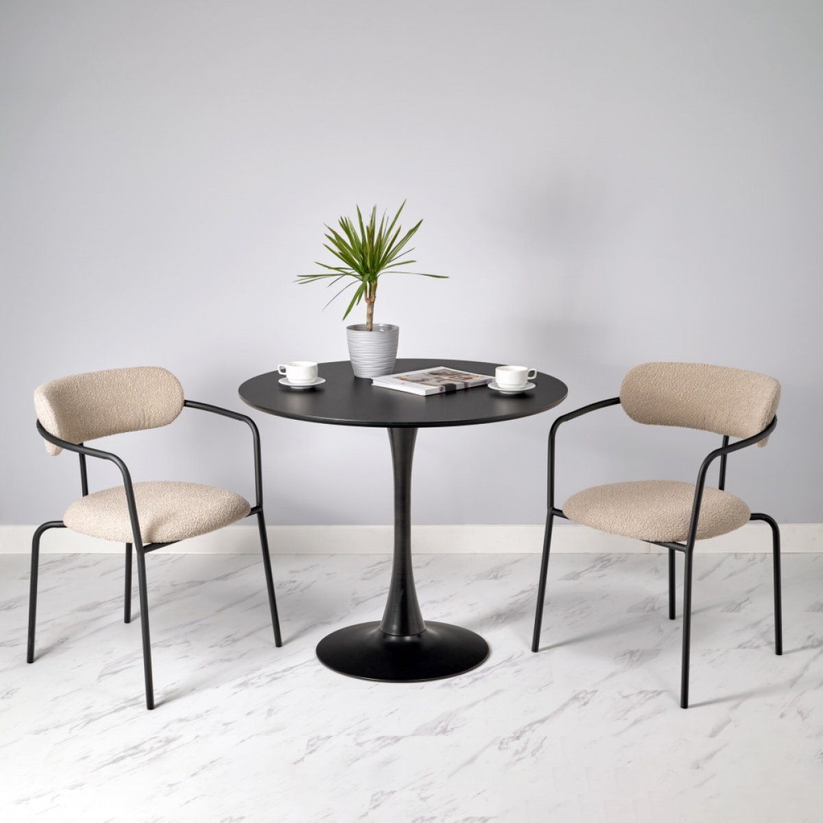 Стулья Ant обладают эргономичной спинкой, мягким сидением и удобными подлокотниками. Высота спинки 79 см обеспечивает комфортную поддержку, а изысканный минималистичный дизайн с черным металлическим каркасом и ножками придает стульям современный вид.