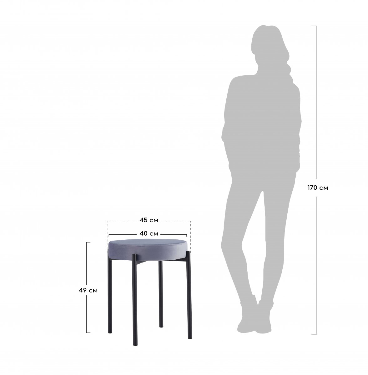 | Спецификация: | Материал: фанера, пенополиуретан, велюр Ножки из метала окрашены в черный матовый цвет. Металлическая труба размер: Ø22мм. Толщина: 1.1мм Плотность пенополиуретана в сиденье: 25 кг/м³ Размер: 45х45х49см Диаметр сиденья: 40см. Высота сиденья: 49см Вес: 2,8кг Максимальная нагрузка: 150кг Рекомендуется штабелировать не более 4 шт, во избежание повреждения обивки и наполнителя. Поставляется в разобранном виде. В комплекте идёт инструкция и комплект аксессуаров для сборки. |