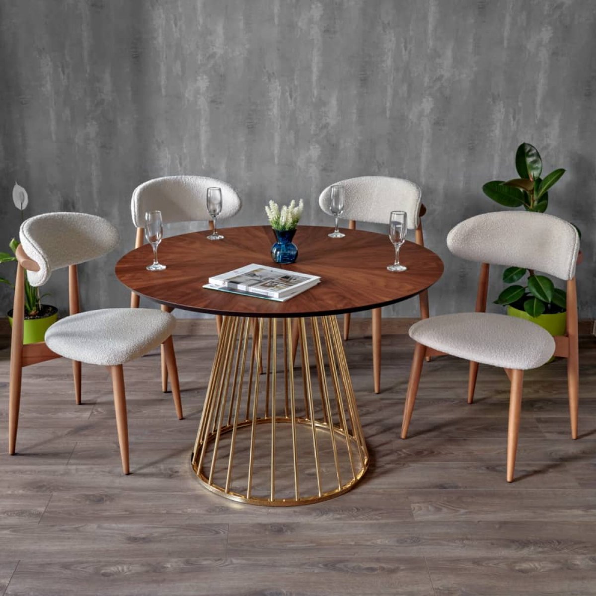 Сиденье и спинка изготовлены из высокоустойчивой ткани букле в цвете латте. Мягкие спинка и сидение обеспечивают максимальный комфорт. Оригинальный каркас из массива натурального дерева в цвете орех добавляет стулу элегантность. Стулья из бука отличаются прочностью и надежностью.