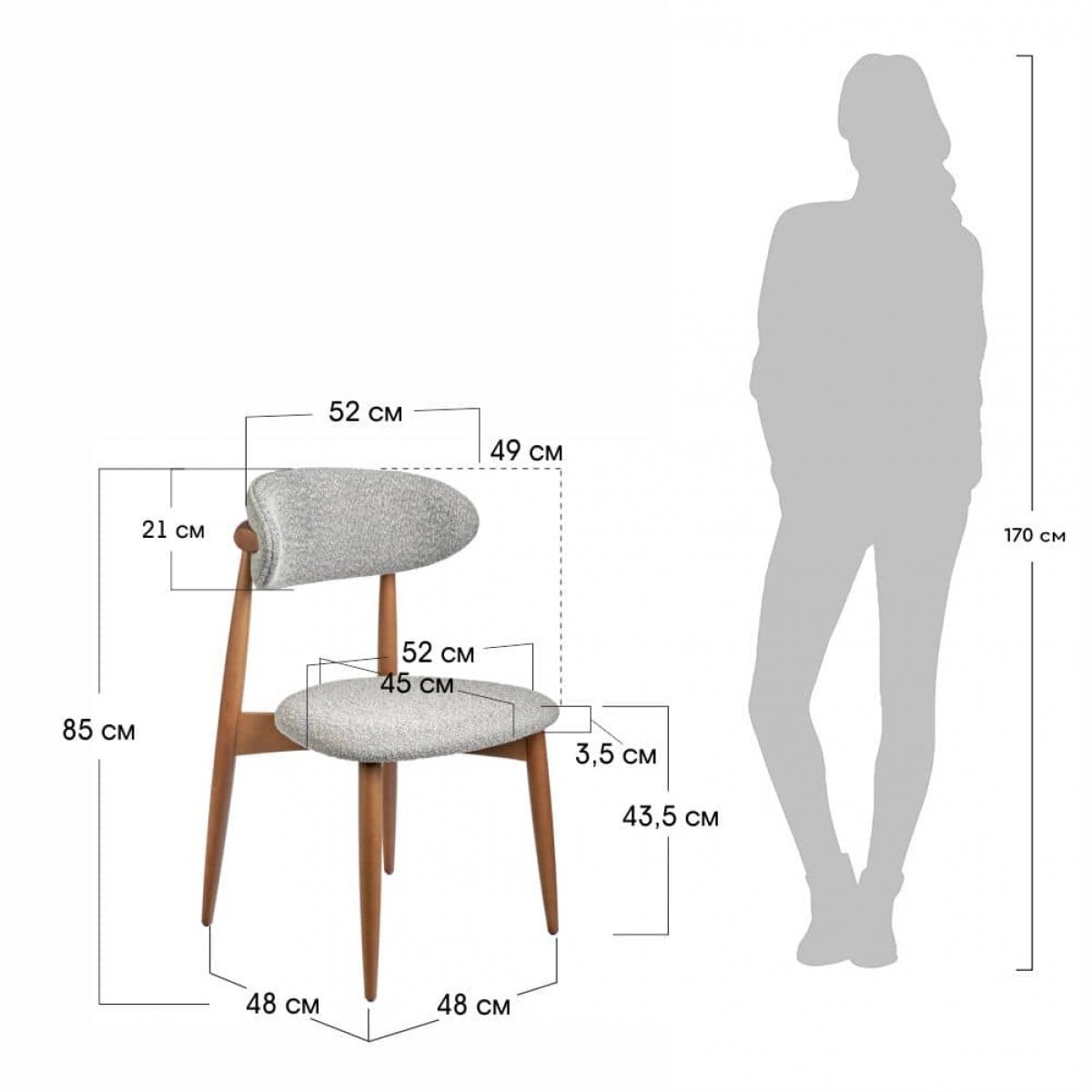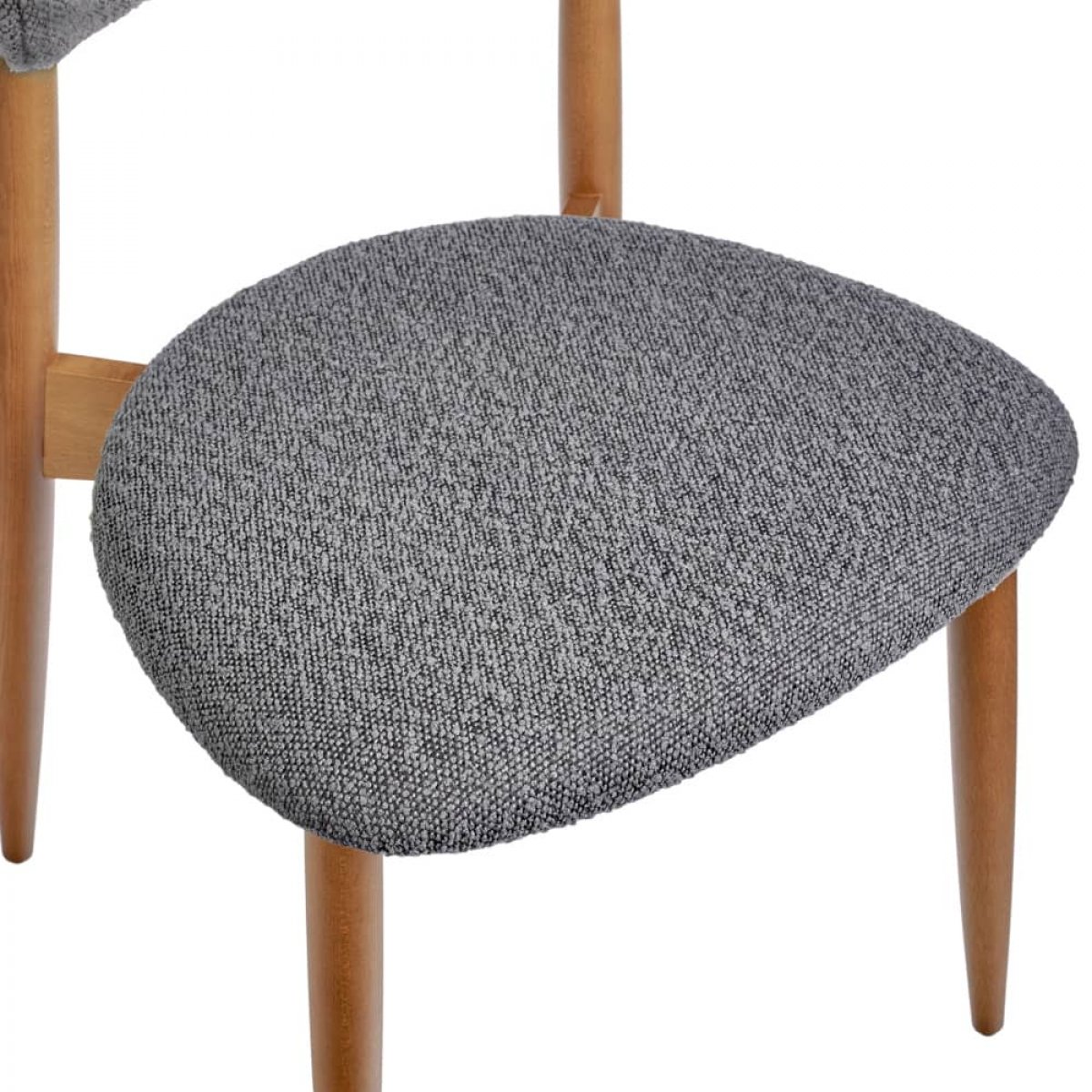 Сиденье и спинка изготовлены из высокоустойчивой ткани букле в тёмно-сером оттенке. Мягкие спинка и сидение обеспечивают максимальный комфорт. Оригинальный каркас из массива натурального дерева в цвете орех добавляет стулу элегантность. Стулья из бука отличаются прочностью и надежностью.