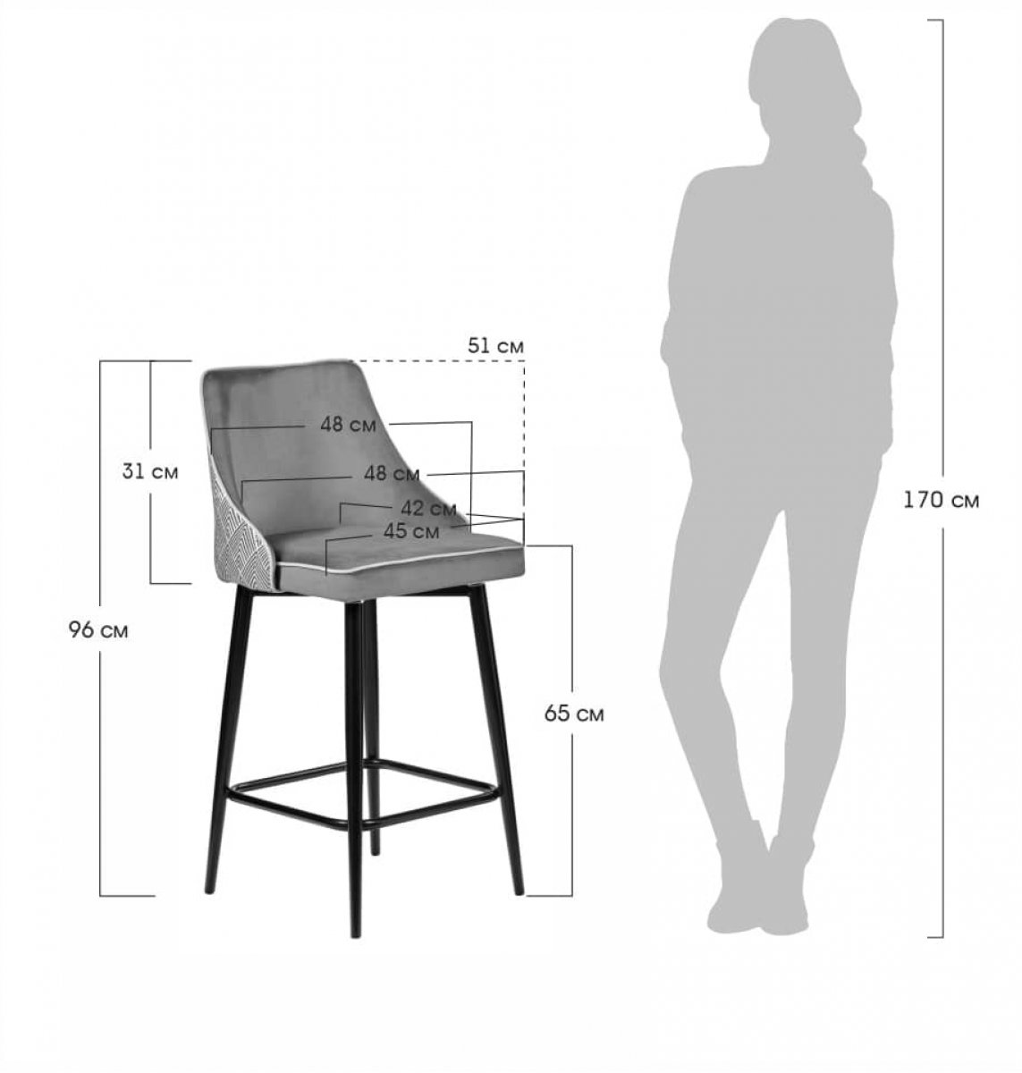 Стул Dave выполнен в комбинации обивки из жаккарда и велюра на устойчивом металлическом каркасе полубарной высоты с поворотным механизмом. Высокая мягкая спинка обеспечит позвоночнику отличную опору. Благодаря своему внешнему виду, он отлично впишется в любой современный интерьер.