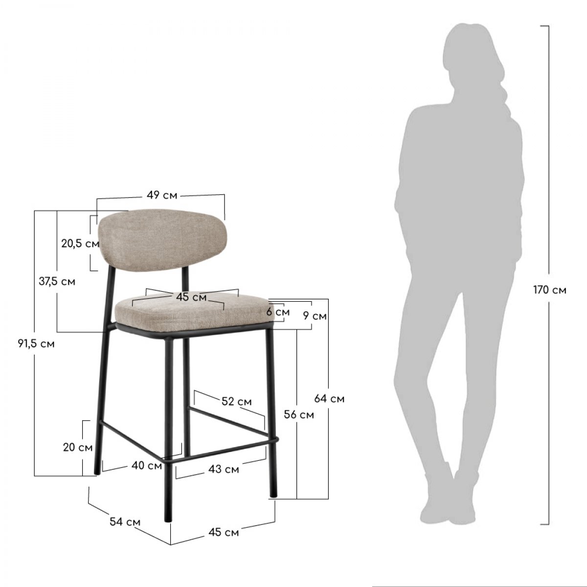 Стул полубарный Lucas 2 латте шенилл с чёрными ножками
