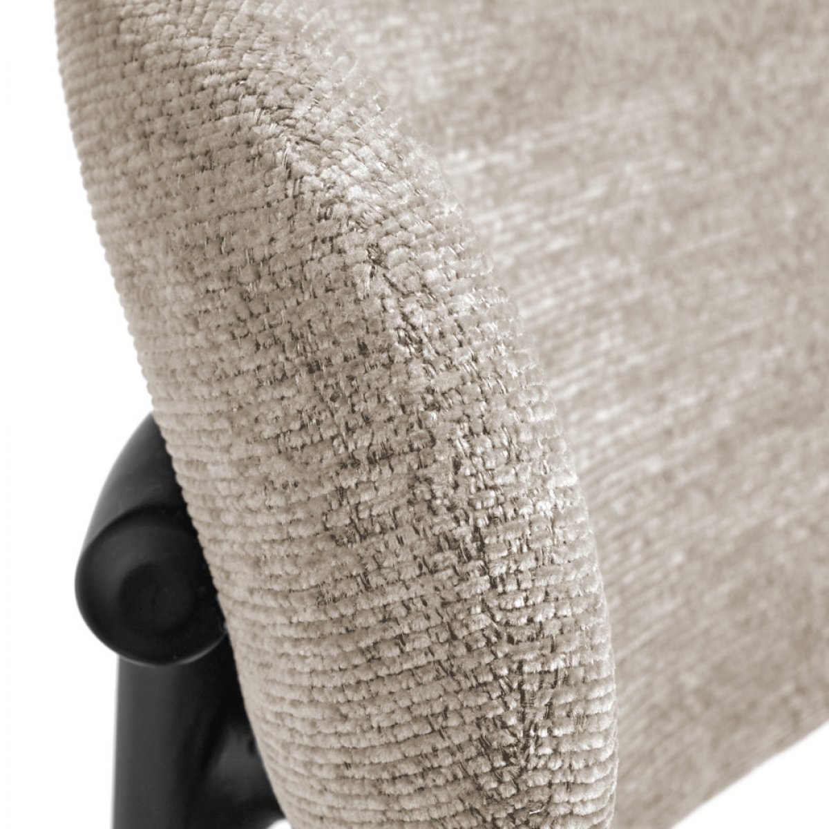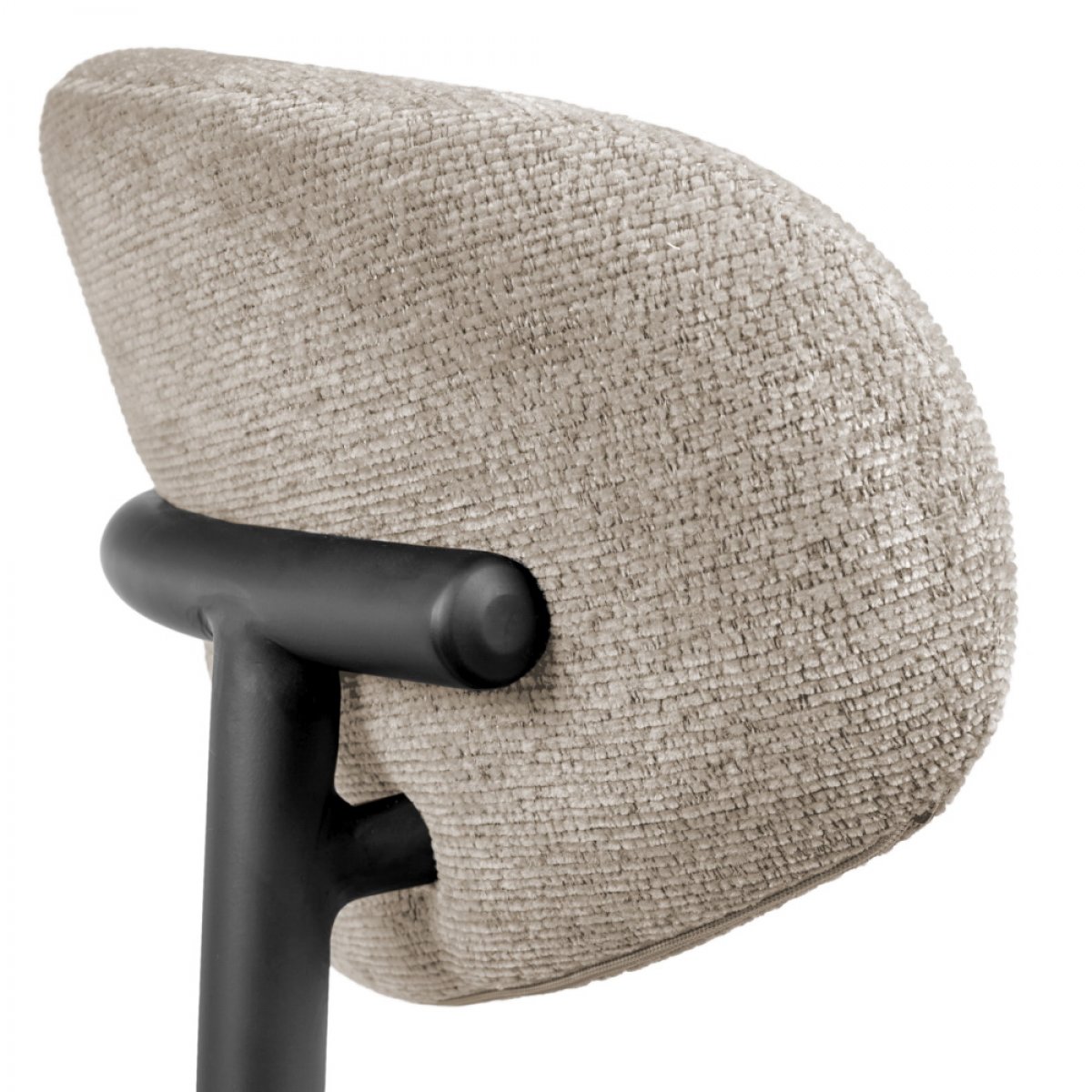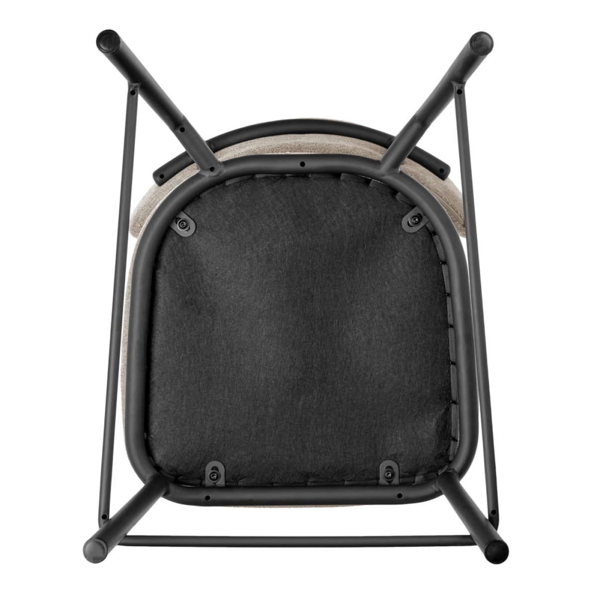 Сиденье и спинка стула выполнены из роскошной ткани букле, обладающей не только приятной на ощупь текстурой, но и высокой стойкостью к износу. Рельефная поверхность добавляет интерьеру натуральности, подчеркивает контуры стула и сглаживает жесткие формы, создавая гармонию в пространстве. Мелкозернистая фактура букле формирует теплую и спокойную атмосферу, приглашающую к отдыху.