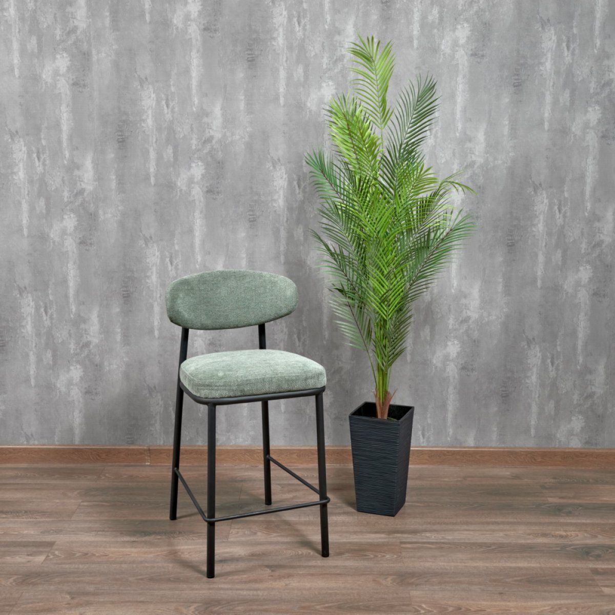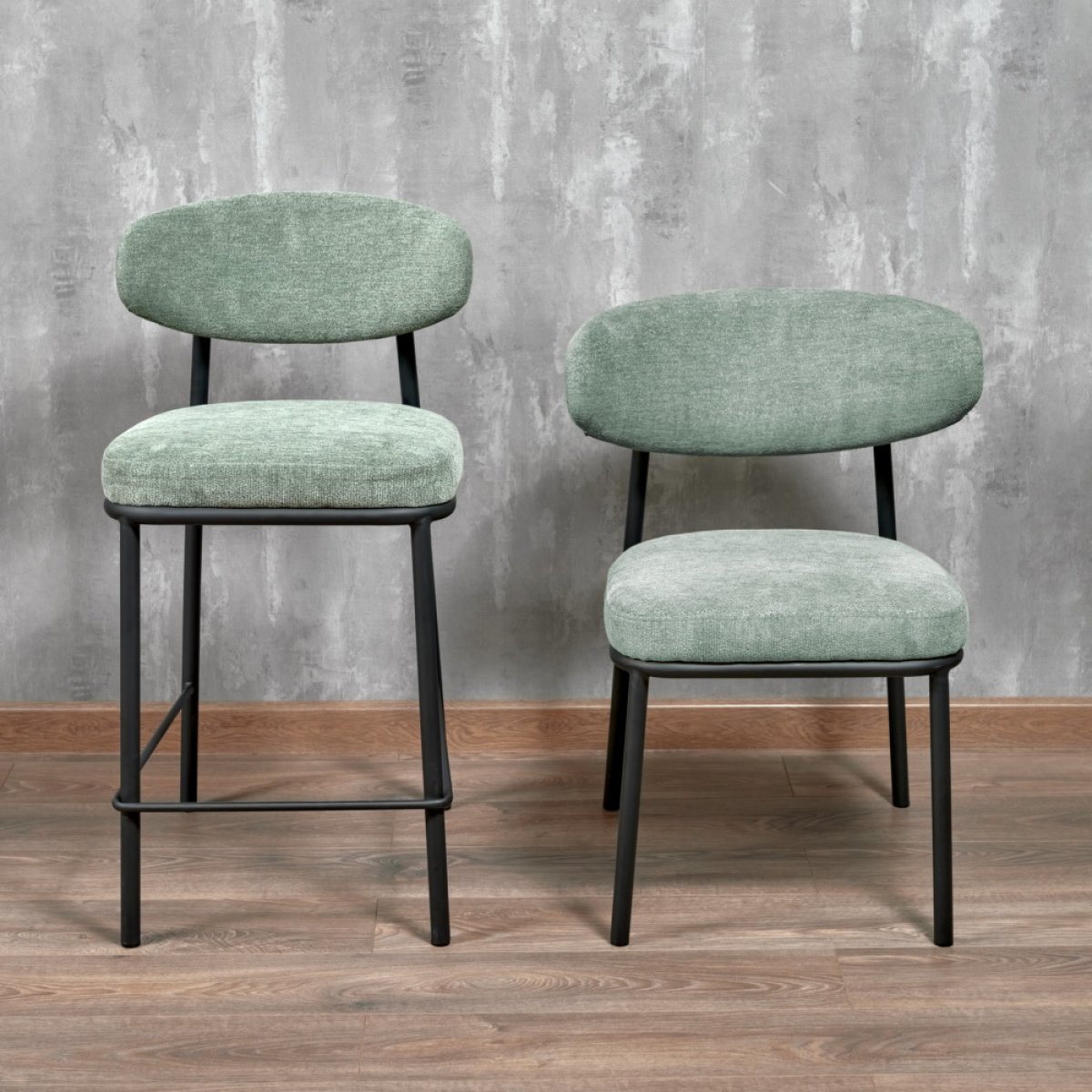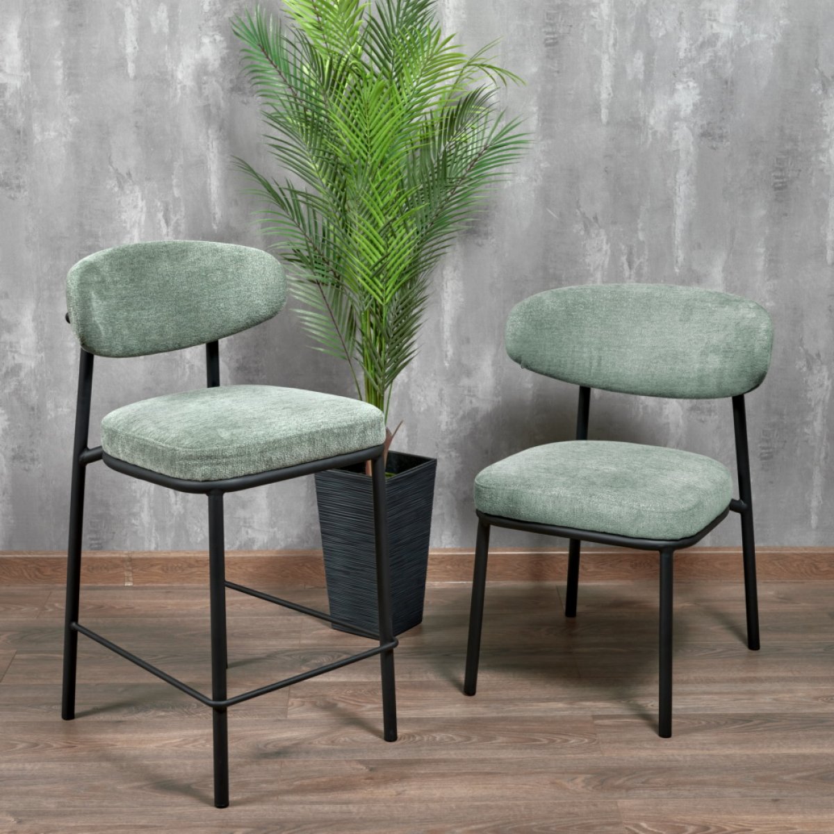 Стул полубарный Lucas 2 шалфей шенилл с чёрными ножками