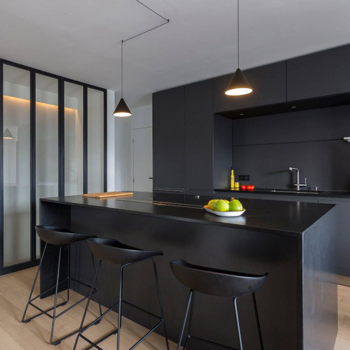 Стул полубарный Neo чёрный с чёрными ножками