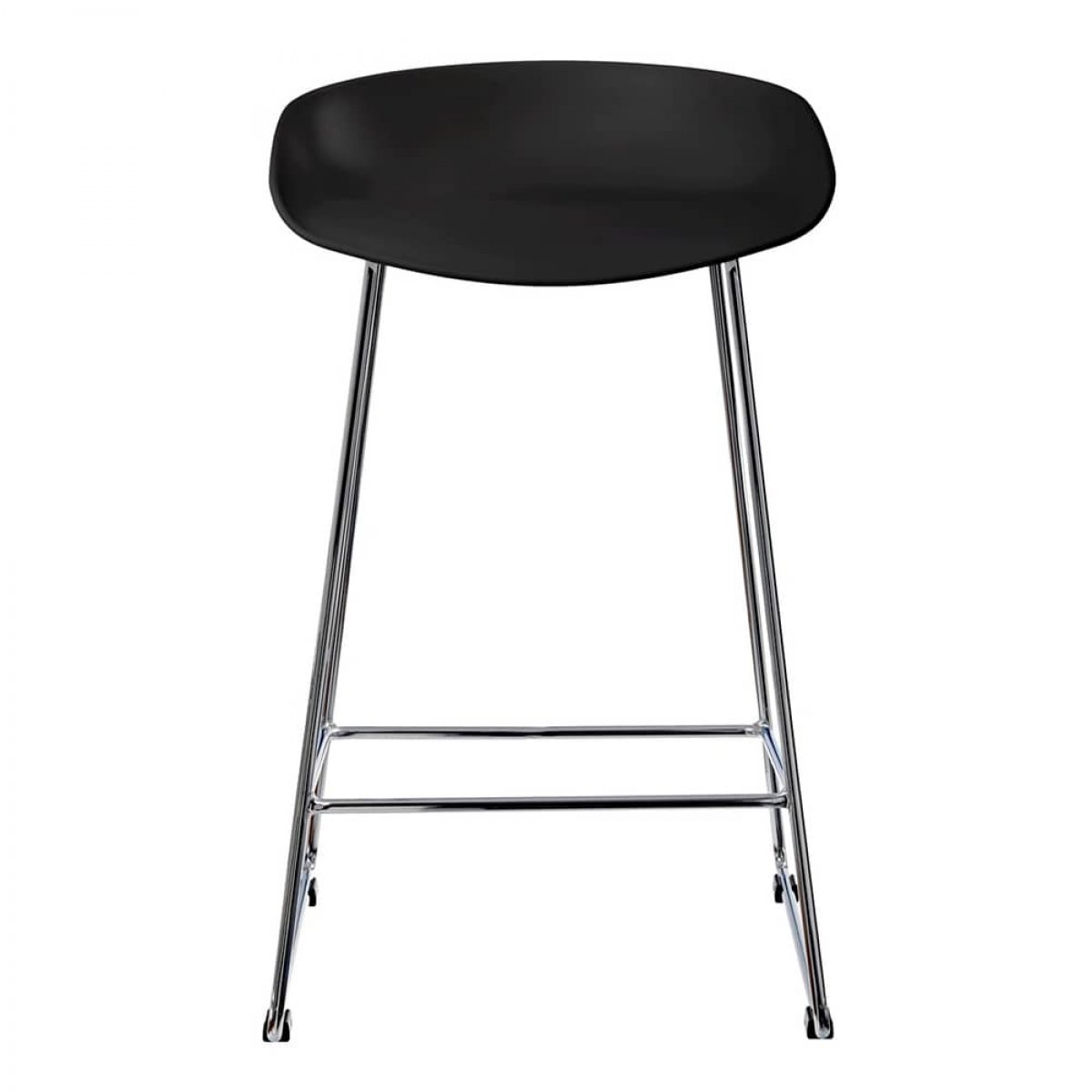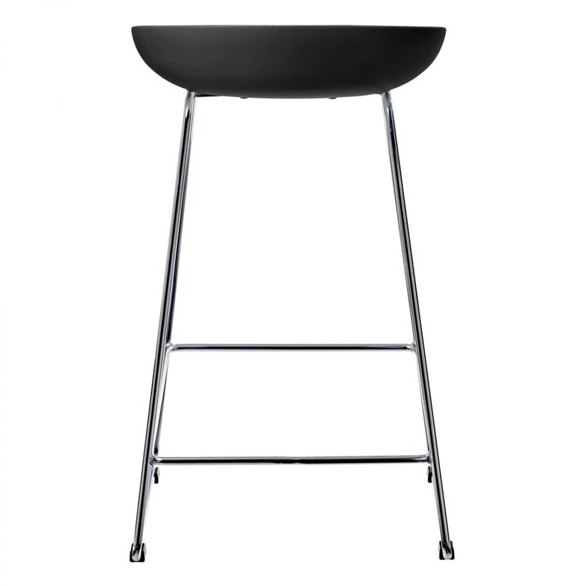 Утончённые металлические хромированные опоры, сиденье из пластика с невысокой спинкой - это минималистический современный дизайн полубарного стула NEO черный.