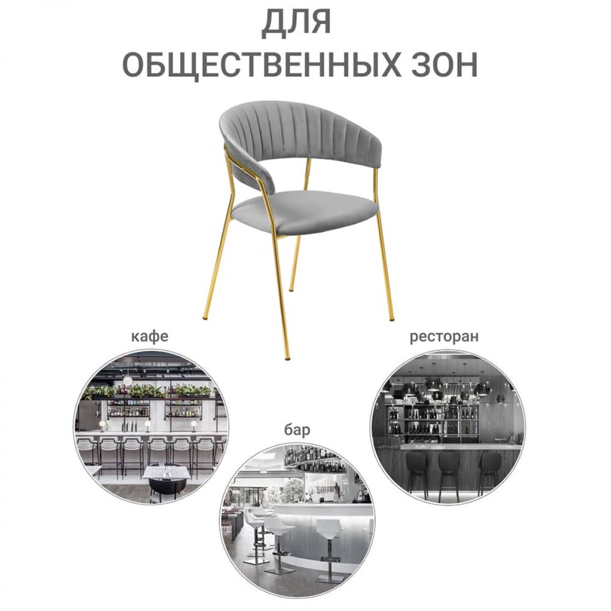 Стул Turin серый с золотыми ножками