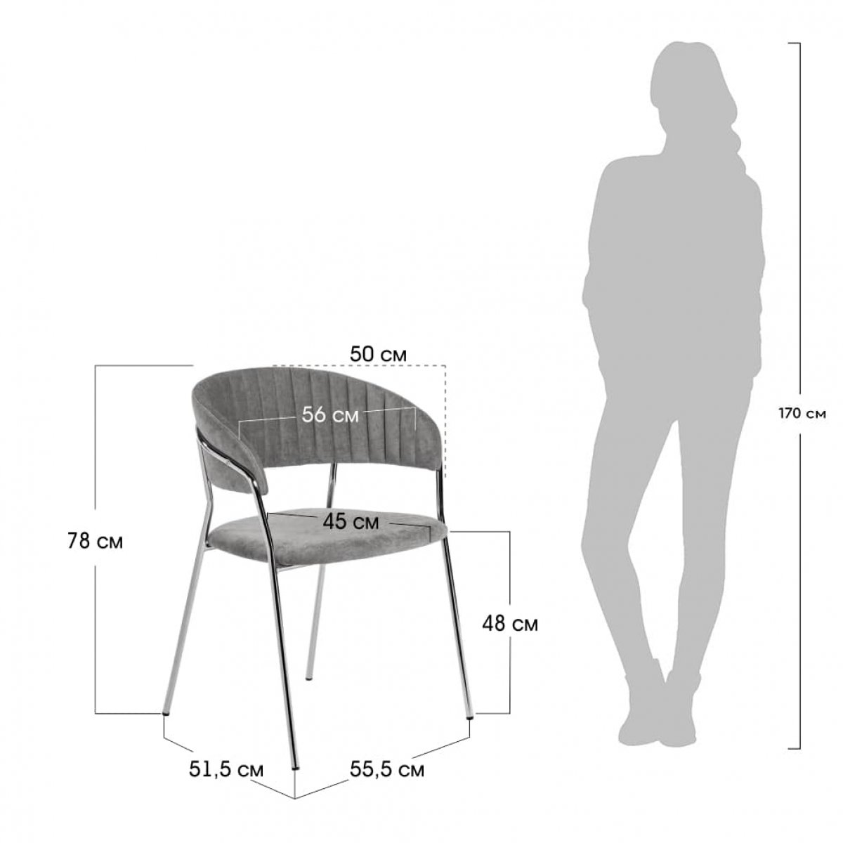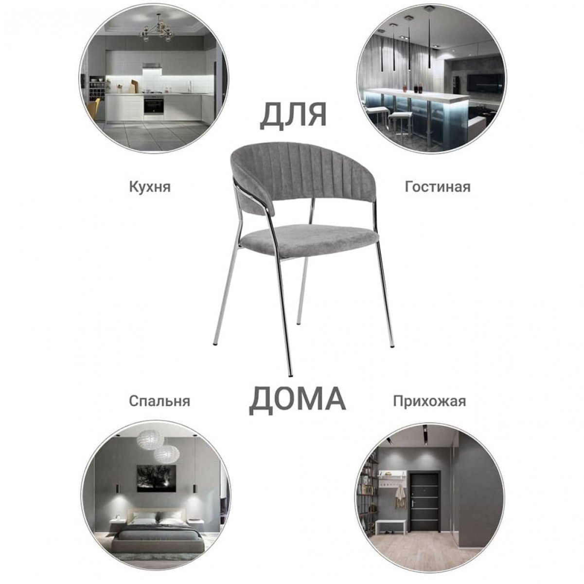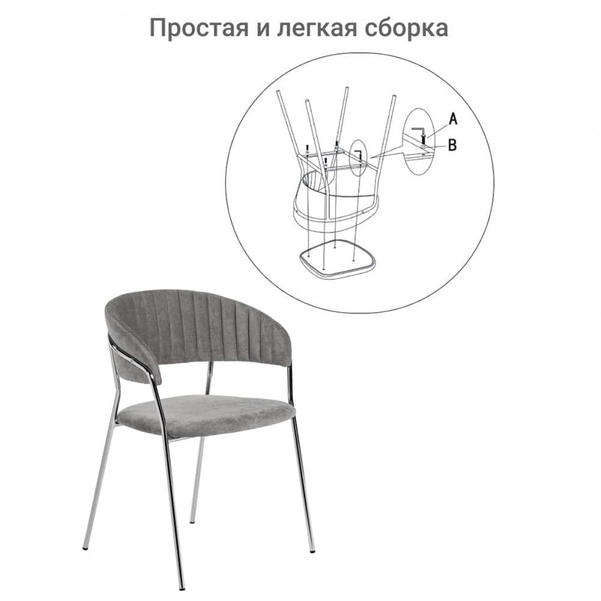Стул Turin серый вельвет с хромированными ножками