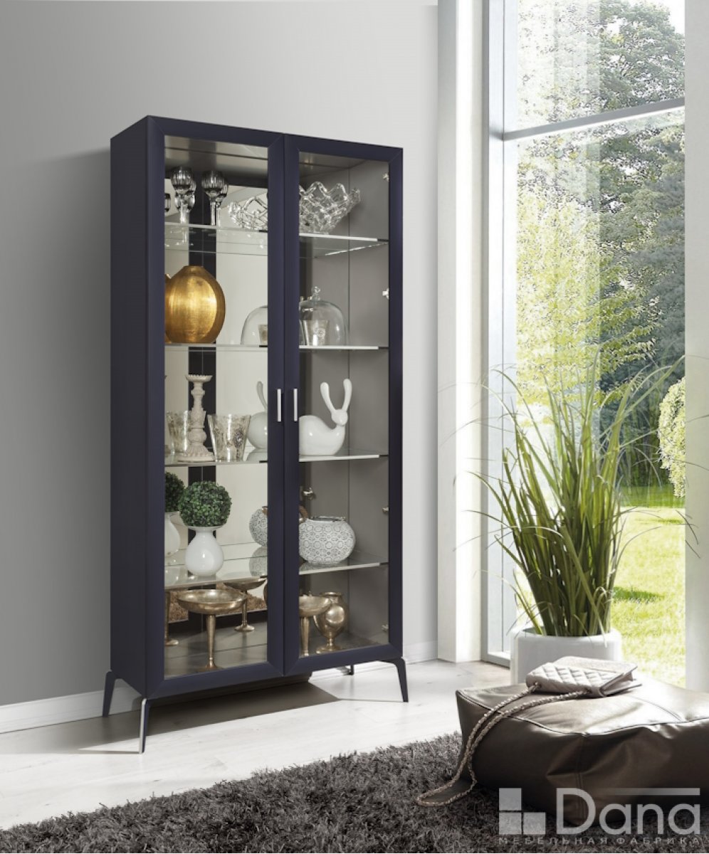 DIMARE (ДИМАРЕ) D3310=ВИТРИНА 2 ДВ. С ЗЕРКАЛОМ ПОЛКИ СТЕКЛО 4 ШТ