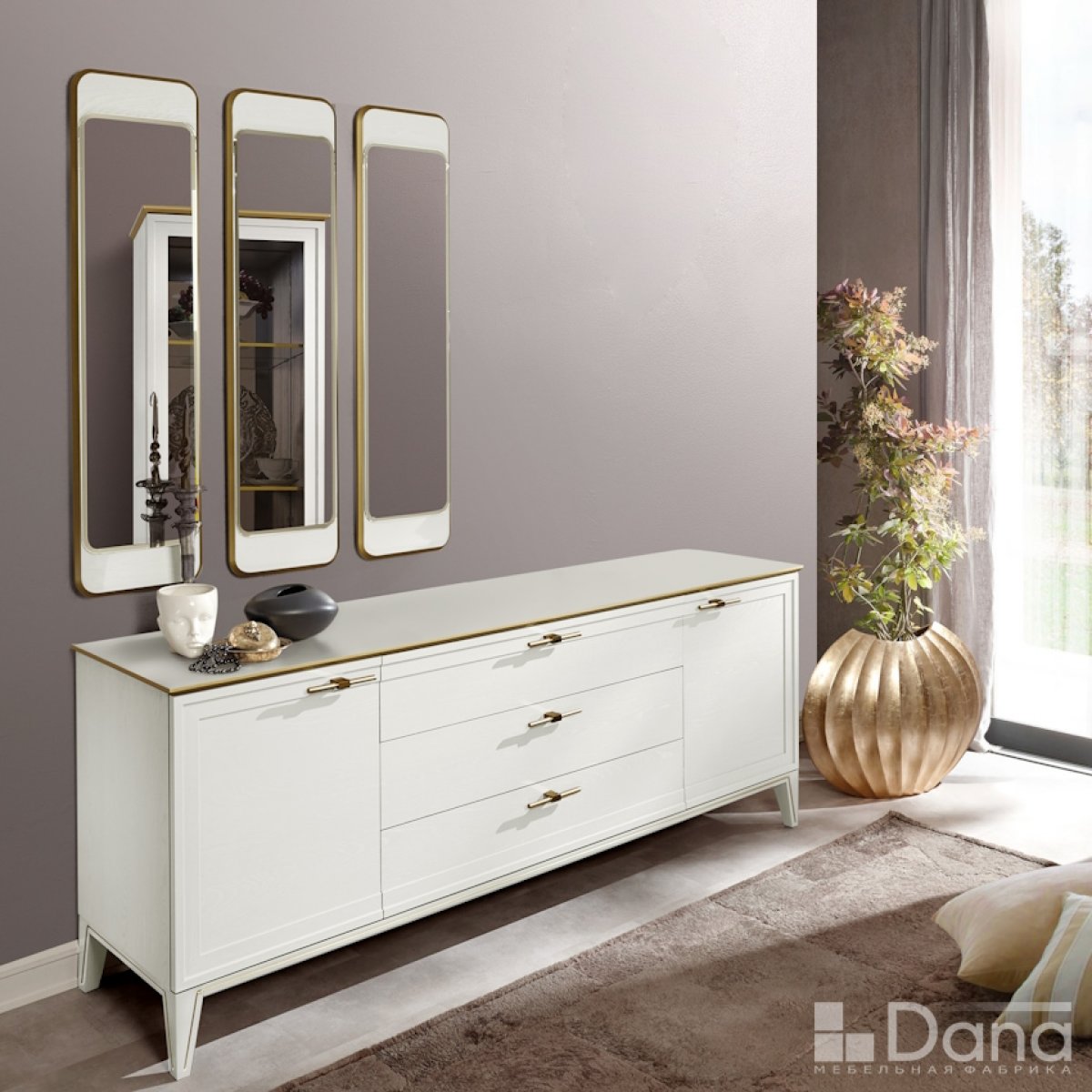 Стильное зеркало серии Palmari. Подвешивается на крючки. Выполнено из МДФ с фигурной фрезеровкой и многослойным покрытием декоративного торца лакокрасочным материалом в цвет матового золота. Зеркало имеет фацет по контуру и тонировку в цвет бронзы.