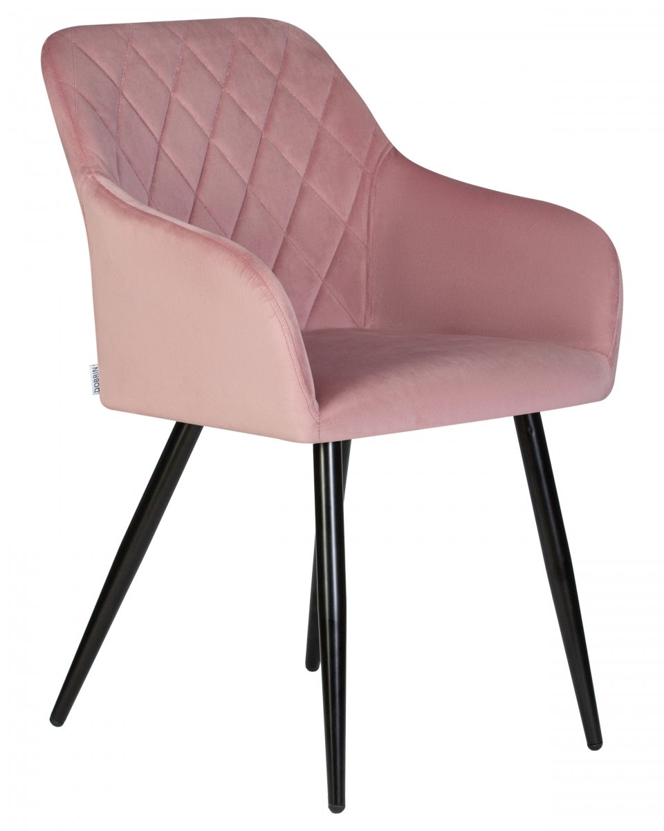Набор 2 шт Стул обеденный DOBRIN ROBERT, черные матовые ножки, велюр V108-15 Розовый