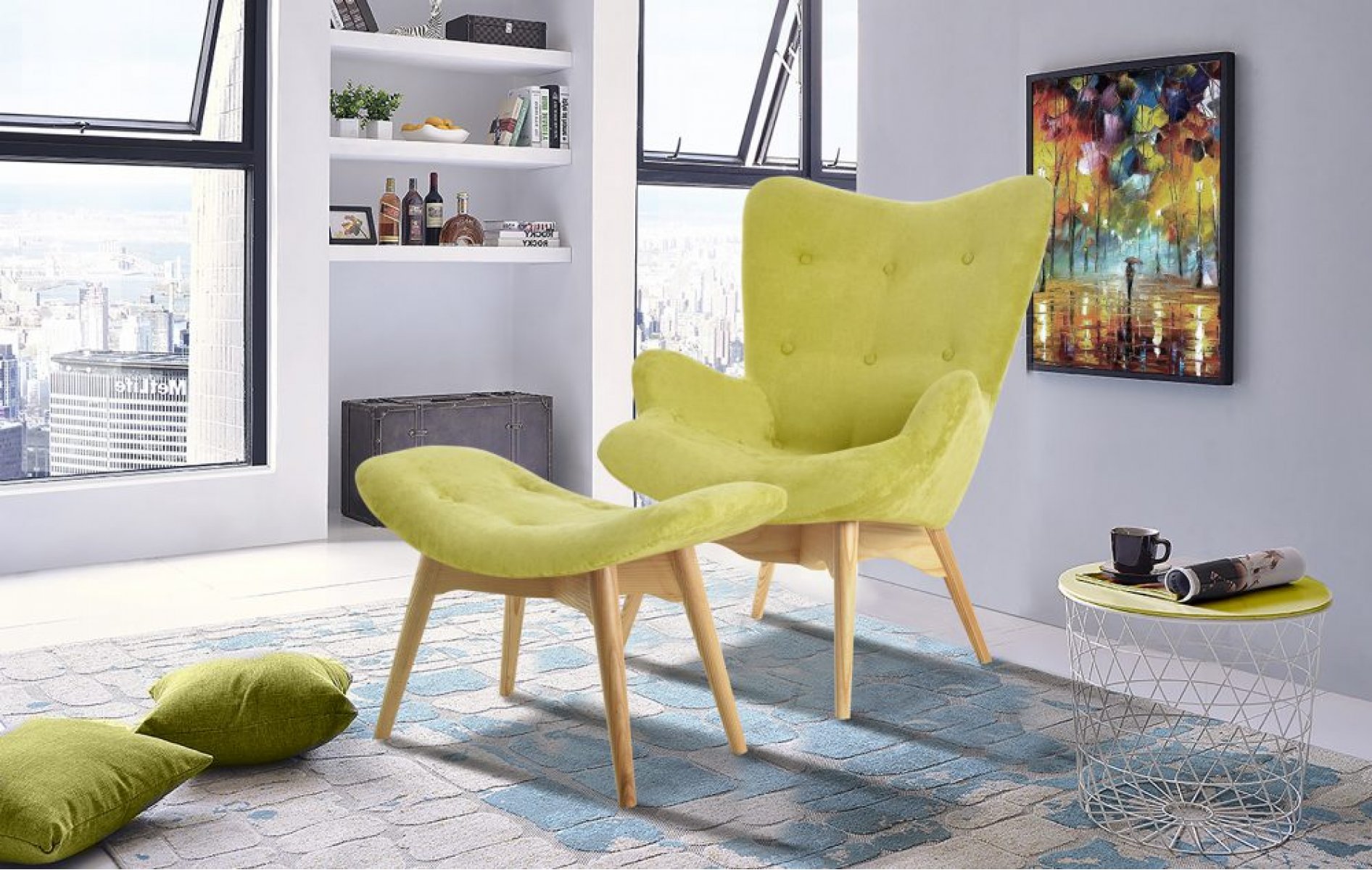 Банкетка DС-917F цвет оливковый YR2214-12 ноги ясень-01