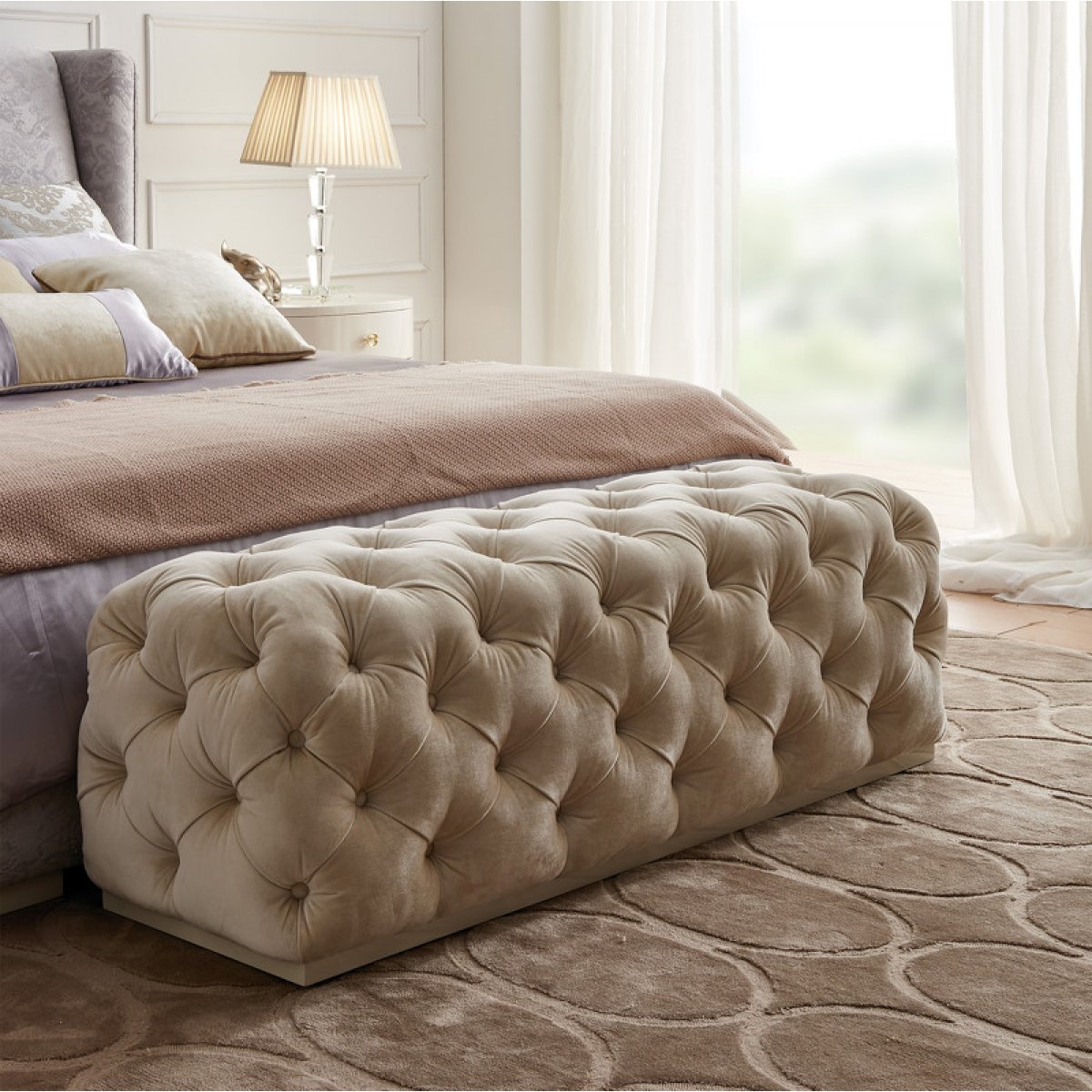 Банкетка ROMA отделка бежевый лак (Beige B), ткань светло-бежевый велюр (Anyzo 01)