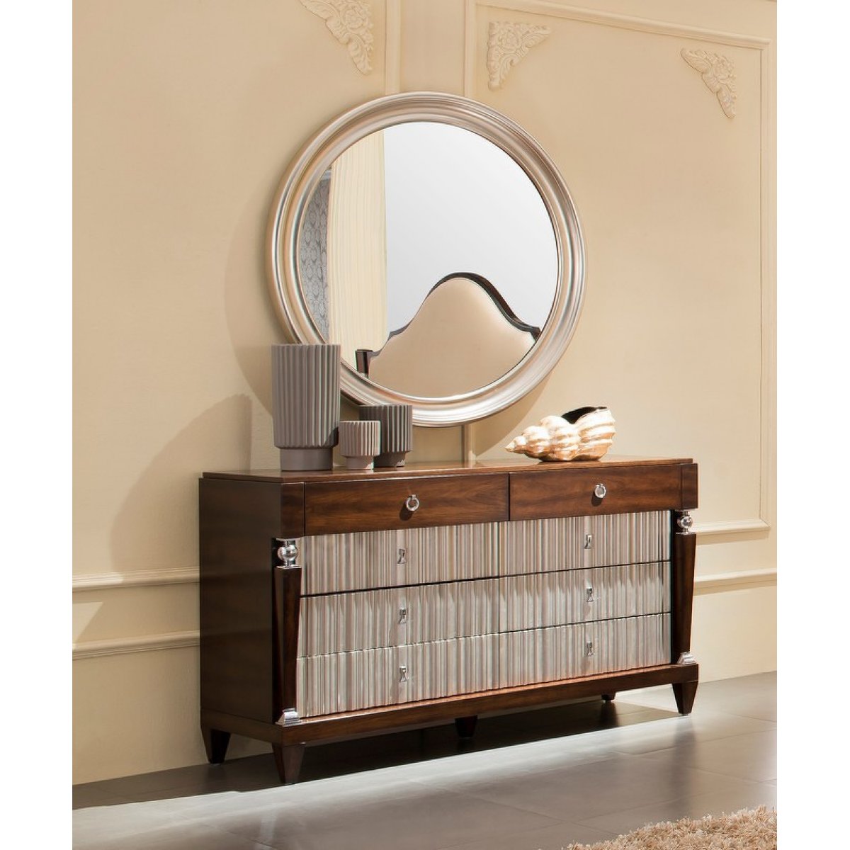 Комод MESTRE шпон вишни C (Cherry С), сусальное серебро, покрытое лаком шампань