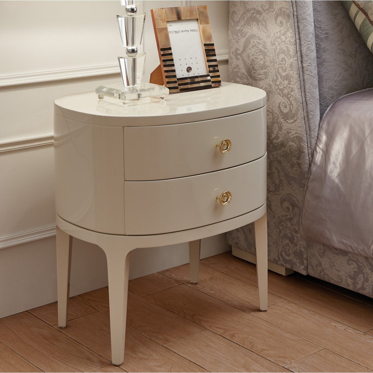 Прикроватная тумбочка ROMA отделка бежевый лак (Beige B), ручки-хрусталики