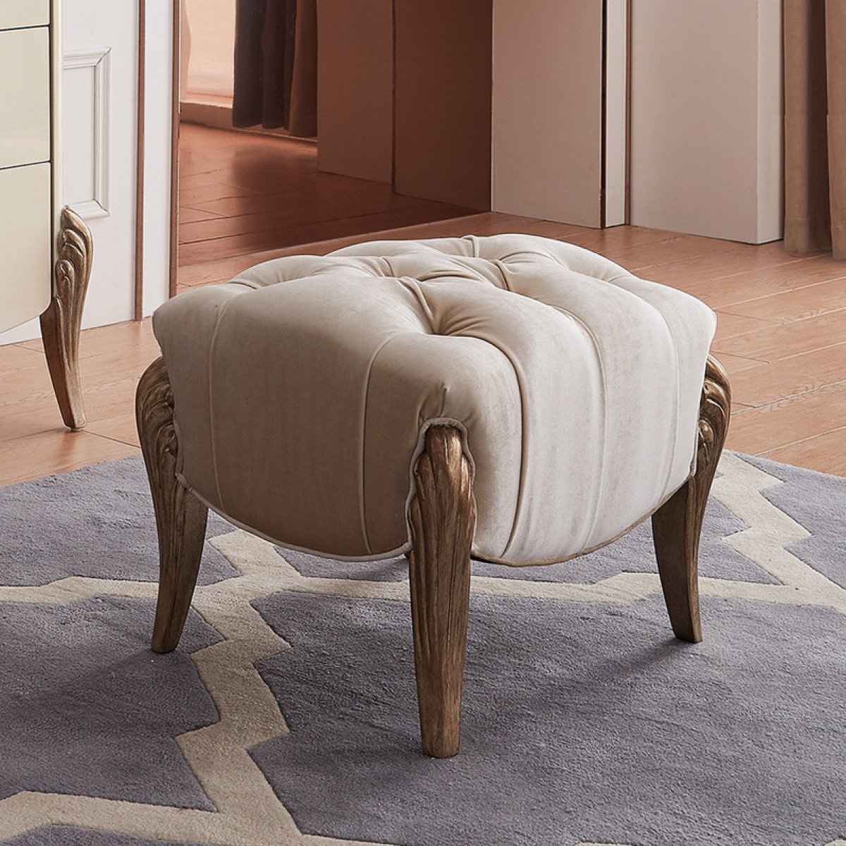 Пуфик ROMA отделка сусальное серебро (silver foil), ткань светло-бежевый велюр (Moki‐02)