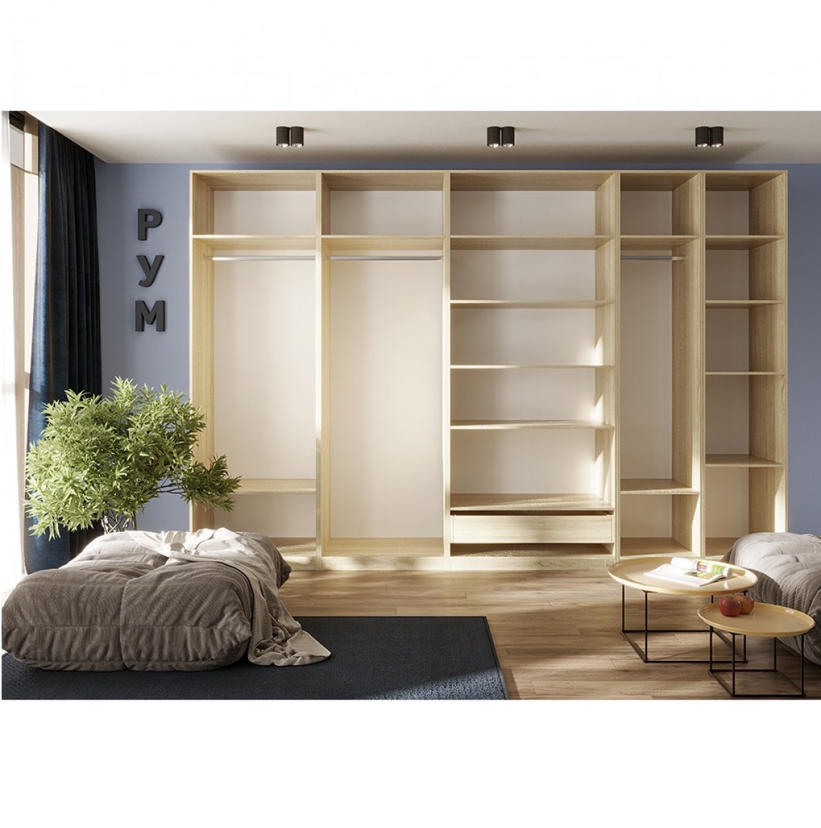Гардеробная Рум. Комплект 6.1 без фасадов, дуб сонома