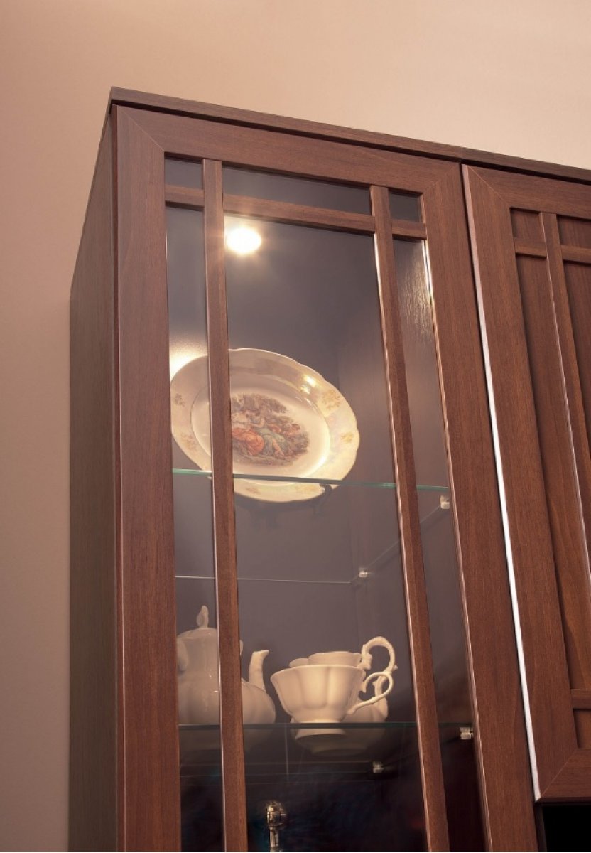 Гостиная Sherlock создана для любителей качественной и визуально привлекательной мебели в классическом исполнении. Особенность коллекции - необычные рамочные фасады из МДФ, дополненные тонкими накладками, что придает модулям особый шарм. Мебель выполнена в трех декорах на выбор с имитацией текстуры натурального дерева и украшена стильными металлическими ручками. Широкий ассортимент модулей позволит Вам грамотно обыграть пространство гостиной, не загромождая его, и украсить интерьер. Например, комплект 3 изготовлен в декоре "орех шоколадный" и состоит из шкафной группы для хранения одежды, белья, посуды и книг, центральной секции с тумбой под телевизор, угловой открытой полки и дополнительной подставки.