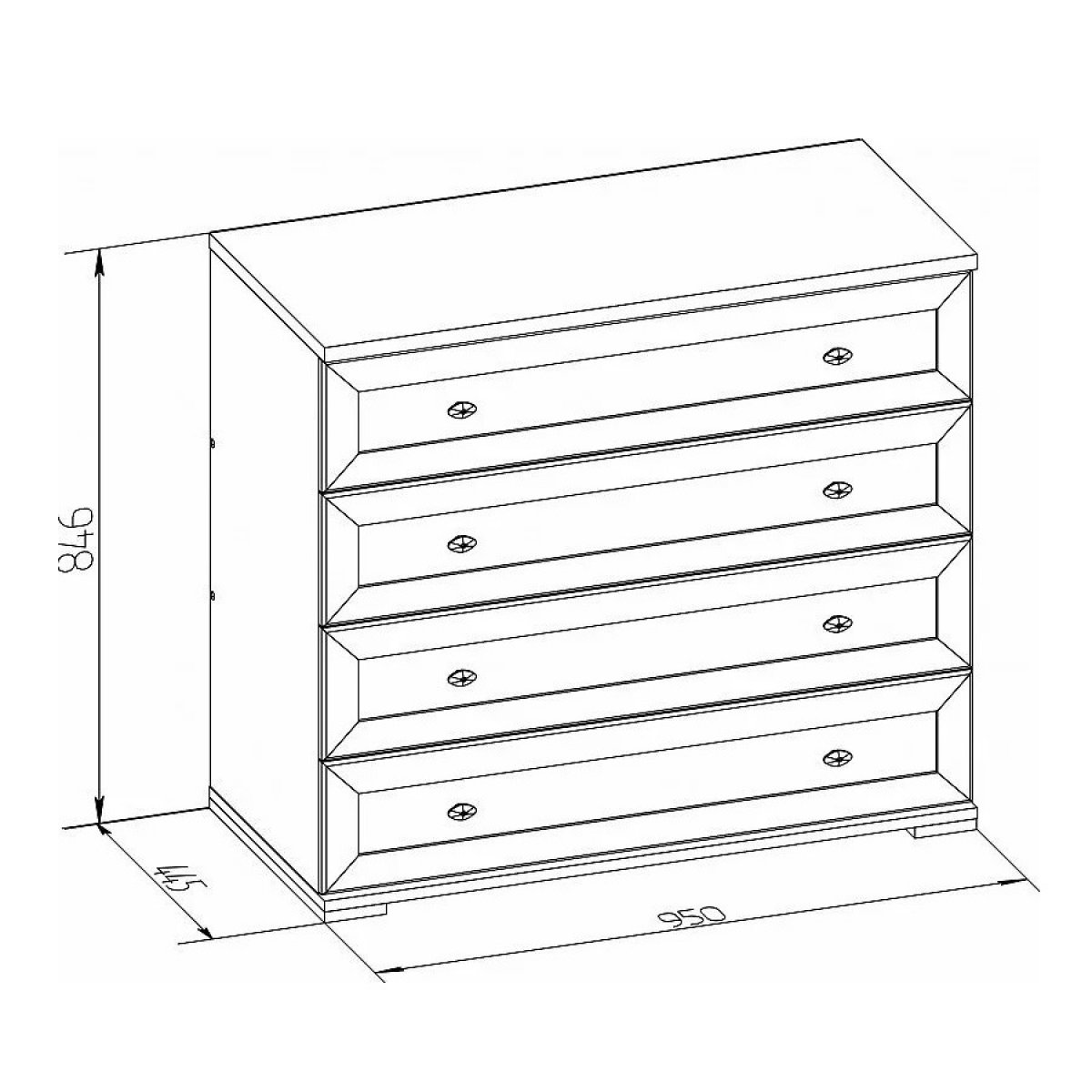 Широкий комод свместительными ящиками - незаменимый элемент мебели в спальне или гостиной. Модель комплектуется шариковым направляющими полного выдвижения, гарантирующими плавный и бесшумный ход. Габариты ящиков 89х35х14 см, максимальная нагрузка на каждый - 20 кг. Прекрасно сочетается с навесным зеркалом и трюмо из коллекции Sherlock.