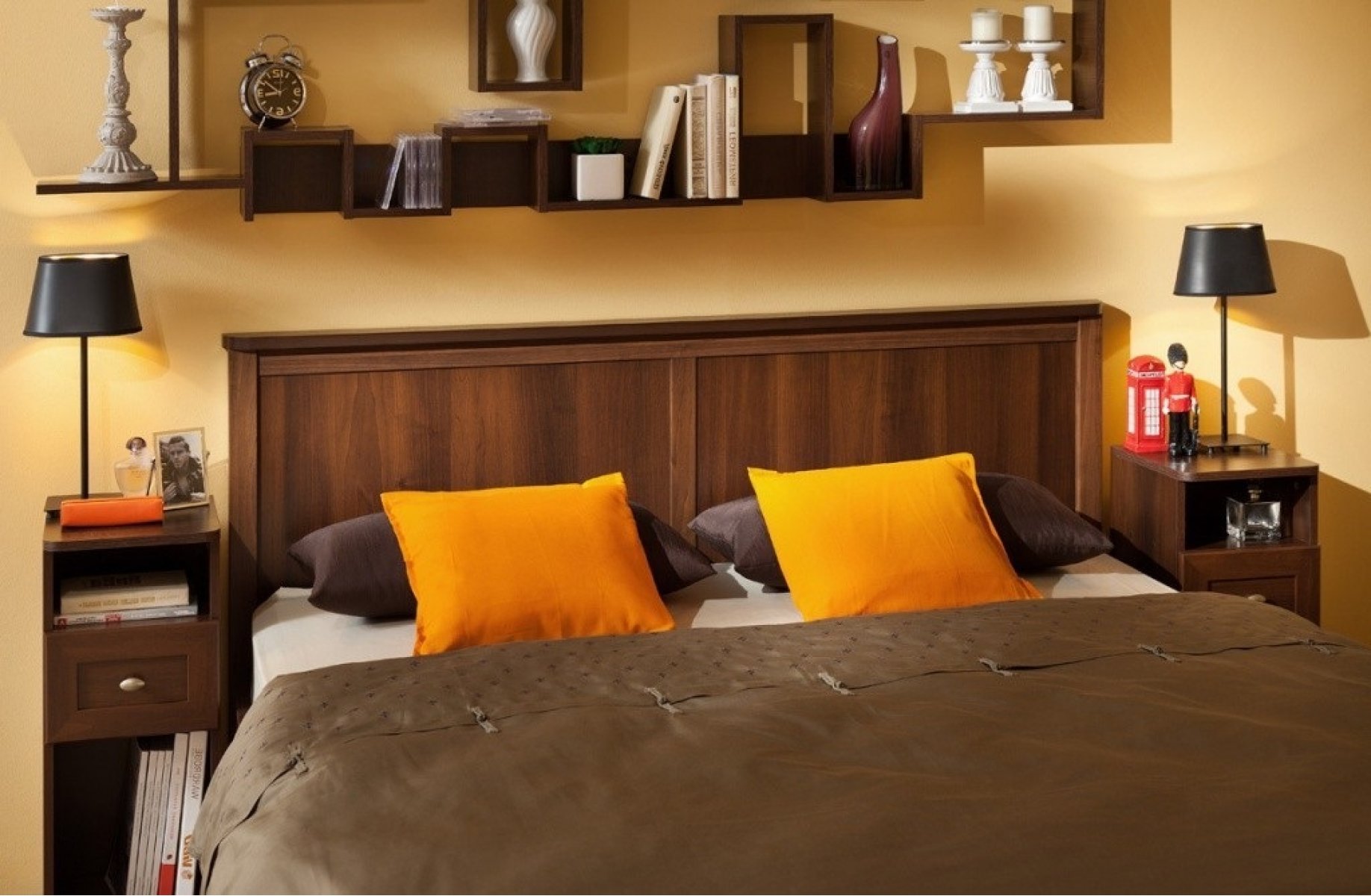 изголовье кровати обрамлено профилем МДФ