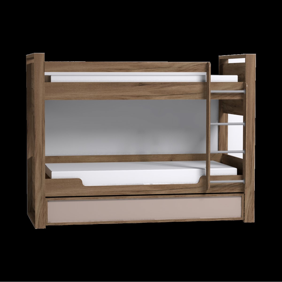 Отличным решением, позволяющим сэкономить место в небольшой квартире, будет двухъярусная кровать. В комплектации кровати - лестница с металлическими перекладинами диаметром 25 мм. Помимо спального места, на верхнем и нижнем ярусах кровати имеются дополнительные боковые ниши, которые помогут подростку держать под рукой необходимые перед сном вещи. Размер матраса для спального места: 190 х 90 см, высотой до 18 см. Хранить постельное белье будет удобно в выдвижном ящике на выкатных роликах. При необходимости можно организовать дополнительное спальное место другу, который останется ночевать. Для этого достаточно убрать разделитель и положить матрас. Размер матраса для дополнительного спального места: 190 х 80 см, высотой до 18 см. Ещё одно из преимуществ этой кровати - встроенное зарядное устройство CHARGE-S USB. Используется для зарядки мобильных телефонов, планшетов.