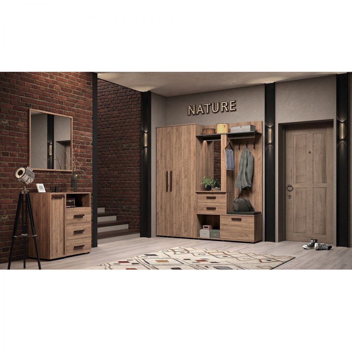 Какой бы не была Ваша прихожая, с мебелью из коллекции Nature Вы сможете обустроить ее рационально и с наименьшими затратами. Современный стиль, материал под натуральное дерево, грубые детали добавят стиля входной зоне Вашей квартиры.