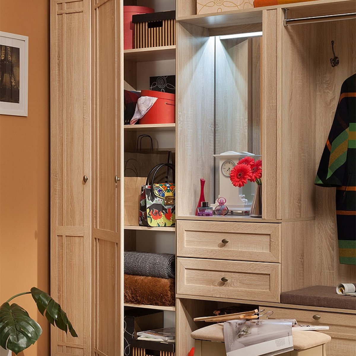 При желании можно докупить и установить модуль 72 Полки (в комплекте 3 полки) в шкаф №71, в заранее просверленные варианты присадки