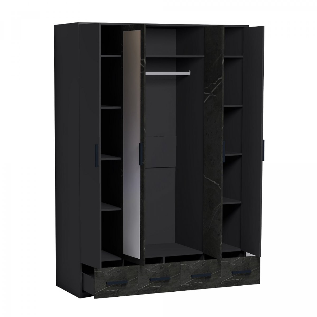 Хотите грамотно обустроить хранение в спальне? Вместительный четырехдверный шкаф из коллекции Айрис решит эту задачу. Продуманное до мелочей наполнение шкафа позволит Вам зонировать хранение одежды всех членов Вашей семьи. По бокам модуля имеется комплект полок для вещей в сложенном виде, центральная секция оснащена продольной штангой для деликатной одежды на плечиках и длинной полкой для коробок. Максимальная нагрузка на штангу - 40 кг. В четырех выкатных ящиках на шариковых направляющих плавного и бесшумного выдвижения хватит места для постельных принадлежностей, текстиля, белья и аксессуаров. Модуль крепится на стену за подвесы.