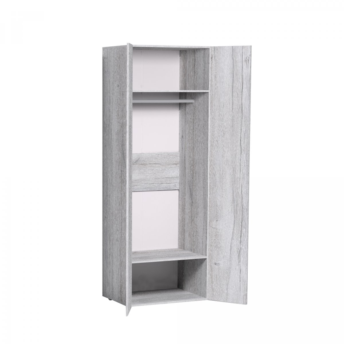 Двухстворчатый шкаф для одежды Neo 54, несмотря на свои стандартные размеры, вмещает большое количество одежды. Модуль оснащен стационарной штангой и двумя широкими полками. Зеркальный фасад визуально освежает окружающее пространство.