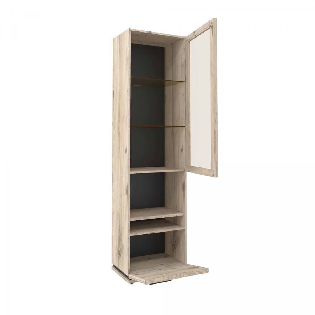 Дополнит легкую компоновку для гостиной и украсит комнату. Такая витрина не только позволяет показать гостям красивую посуду, но и сама является украшением интерьера.