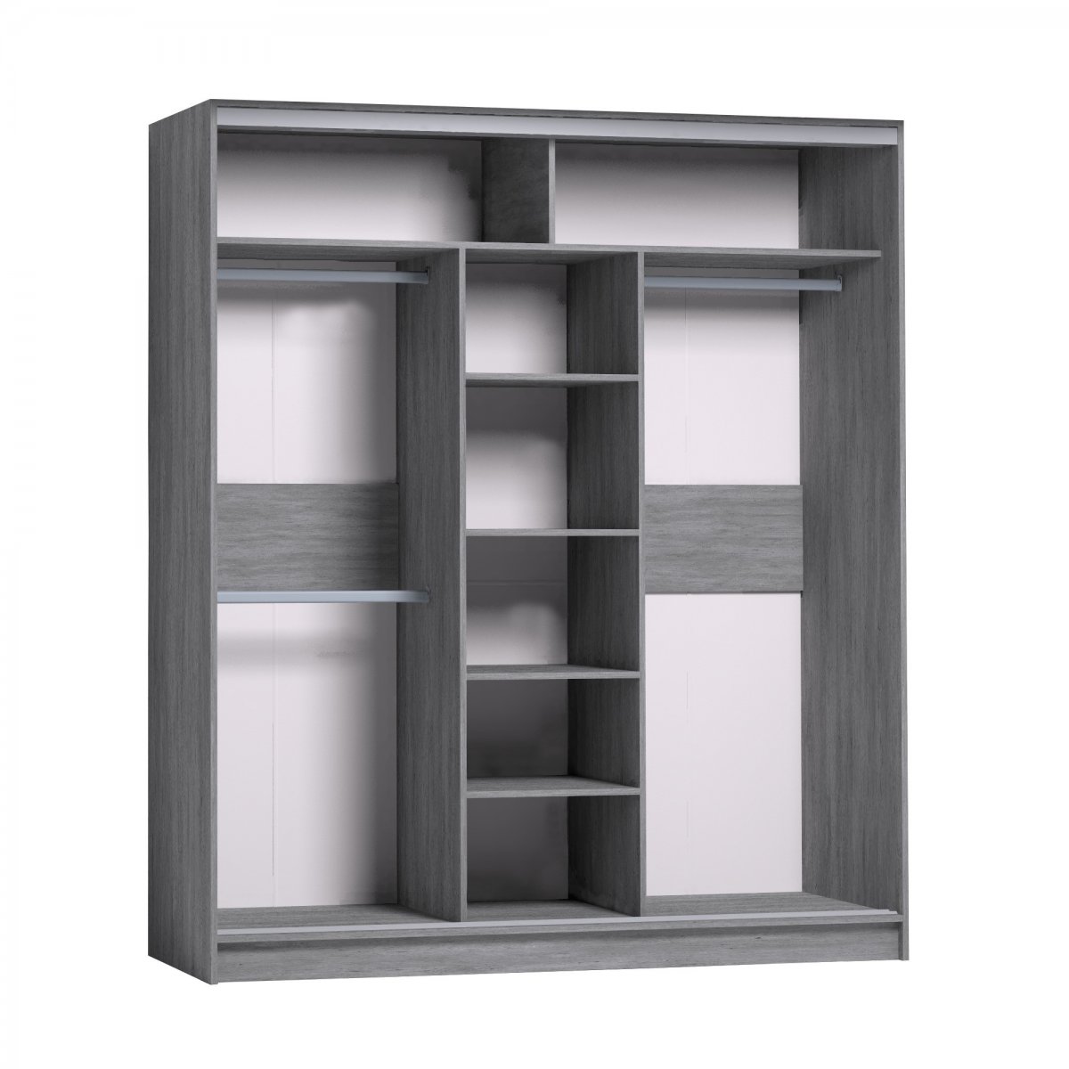 Шкаф-купе STRIKE шириной 1800 мм подойдет для любой комнаты: спальни, гостиной, прихожей, детской. Продуманное внутреннее наполнение шкафа состоит из полок для белья и трех стационарных штанг длиной 635 мм. Разная высота крепления штанг позволяет держать в порядке короткие пиджаки, брюки и длинные вещи отдельно друг от друга. В изготовлении шкафов-купе STRIKE использована прочная стальная система треков «Найди» цвета Металлик. Двери шкафов-купе STRIKE дополнены ручками из массива и шлегелем, который смягчает удары дверей при закрывании, а также защищают вещи от попадания пыли. Зеркальный фасад с обратной стороны проклеен специальной защитной пленкой. Осколки не разлетятся, если зеркало вдруг разобьется. Благодаря скрытым полкодержателям полки шкафов-купе STRIKE жестко крепятся на необходимой высоте. Дополнительные модули:Шкаф-купе 1800 карнизиБрючница 3.