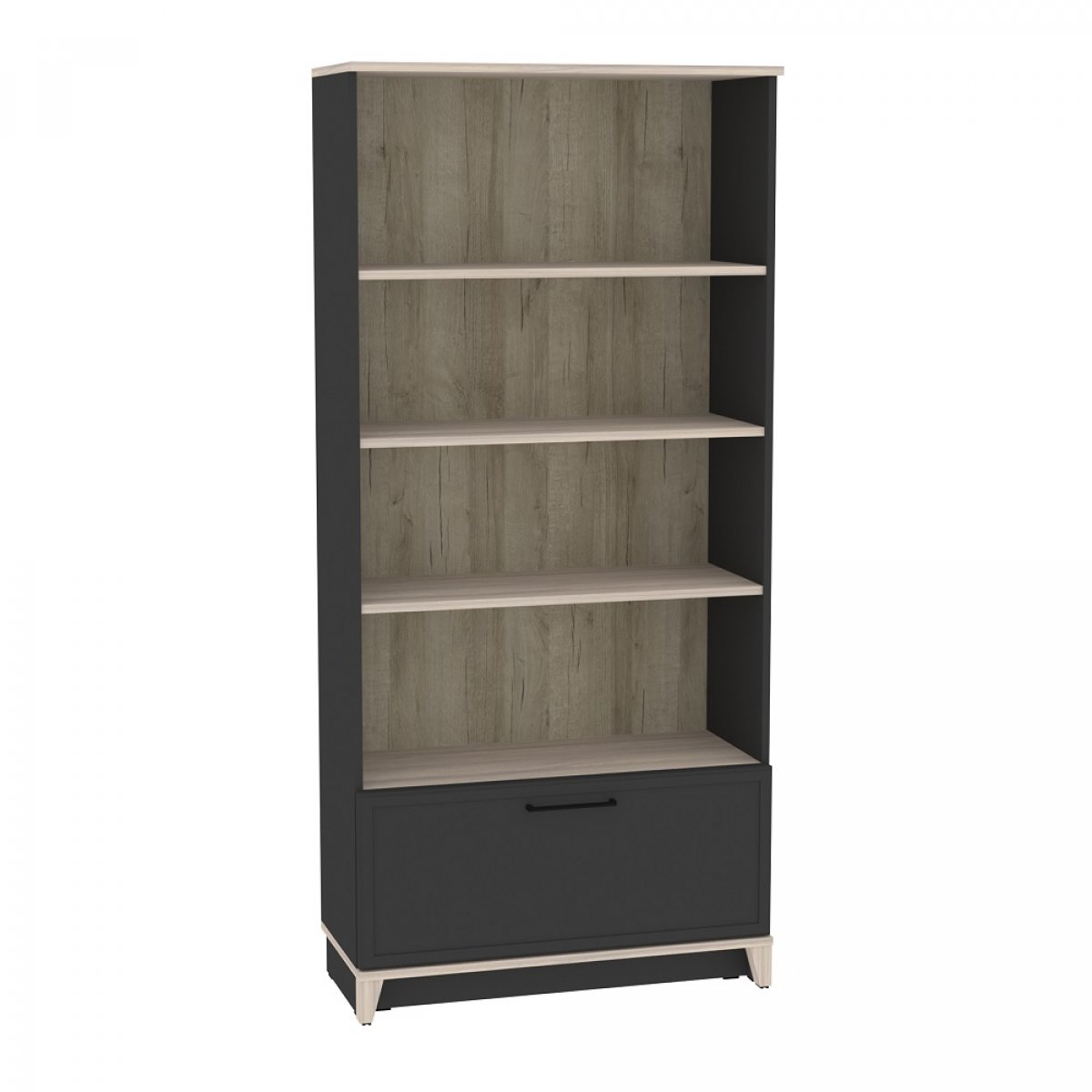 Вместительный шкаф многоцелевого назначения с открытыми полками и закрытой нишей. Поможет организовать пространство гостиной и сэкономить пространство. На широких открытых полках хватит места для всей Вашей литературы, фоторамок и комнатных растений, предметов декора и памятных вещиц. Закрытая секция снизу пригодится для коробок с вещами и всего того, что нужно спрятать от лишних глаз.