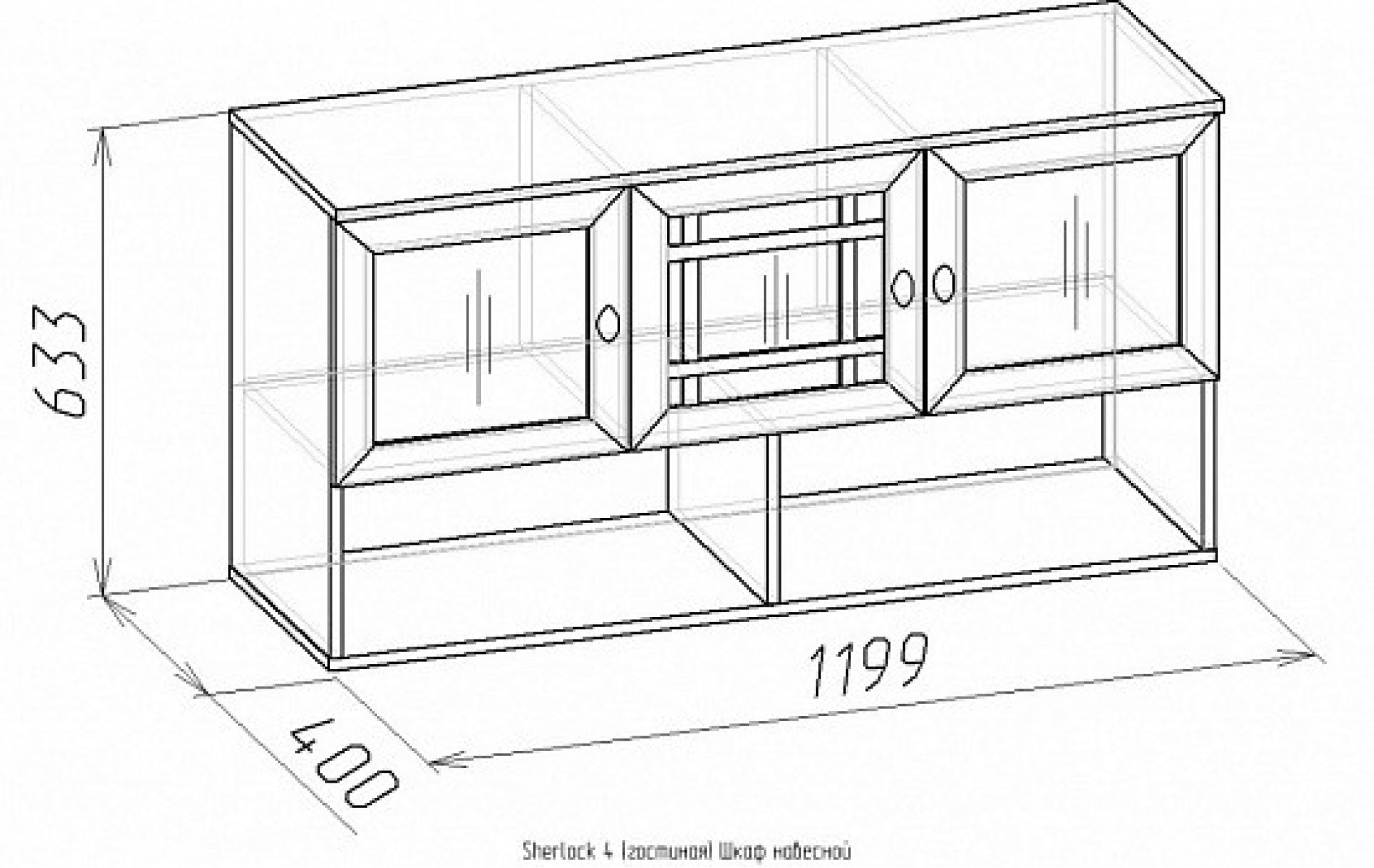 Дополнить и украсить мебельный комплект в любой из комнат без загромождения пространства поможет навесной шкаф из коллекции Sherlock. Комбинация отрытых и закрытых ниш хранения, рамочный декор из МДФ на стеклянных створках, приятный древесный декор - это еще не все преимущества, которыми обладает модель. Прекрасно сочетается со столом туалетным и высокими глухими шкафами и витринами Sherlock. Максимальная нагрузка на шкаф - 80 кг.