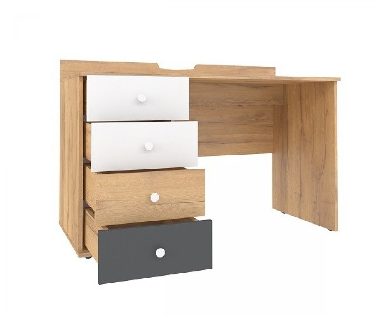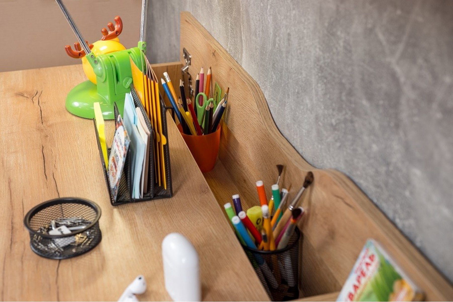 Письменный стол из коллекции Лойс максимально адаптирован под потребности современных детей, которые проводят много времени за своим рабочим местом. Откидная часть скрывает нишу для хранения и отверстие под провода от компьютера. Четыре ящика на шариковых направляющих послужат местом для канцелярии, книг, предметов для творчества, личных вещей ребенка. Просторная столешница позволит Вашему чаду наслаждаться процессом без стеснения движений!