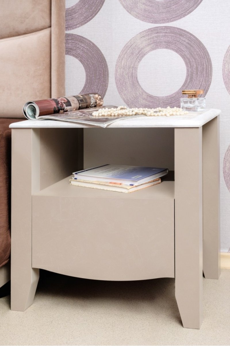 Новый модуль в коллекции Brownie 42 Тумба прикроватная c брашированной столешницей выглядит просто, но в тоже время элегантно. Сочетание открытой и закрытой зон хранения, полки и ящика, - практичное решение, удобство которого ценят многие покупатели. В выдвижном ящичке на шариковых направляющих Вы с комфортом разместите те личные вещи, которые должны быть под рукой перед сном и после пробуждения. Покрытие брашированных поверхностей лаком защищает их от повреждения и продляет срок службы модуля.