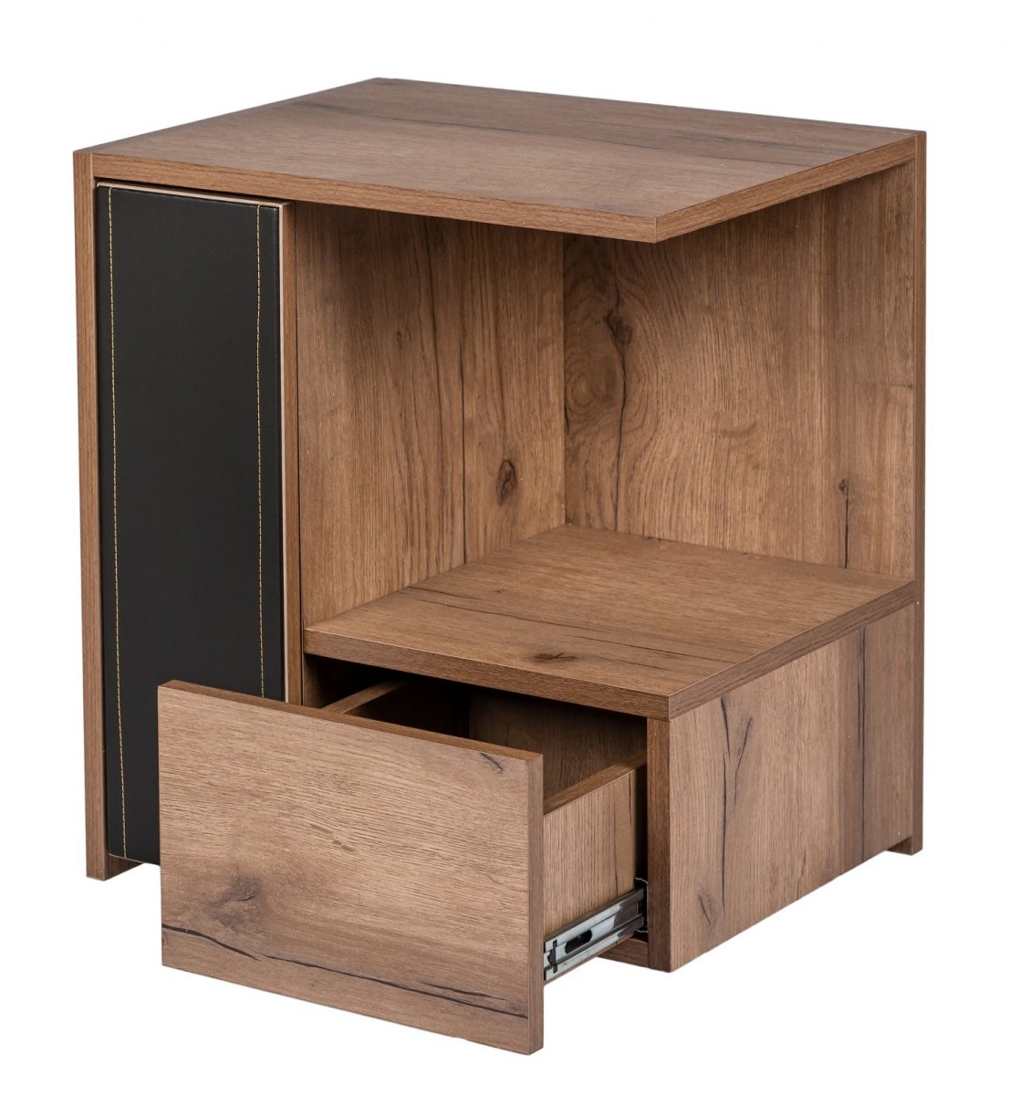 NATURE 42 Тумба прикроватная – необычная и практичная. Небольшой по габаритам модуль(450х355х527 мм) сочетает в себе открытую полку и выдвижной ящик, нишу и отделение с дверкой на петлях, что очень удобно для хранения мелочей, которые так необходимы утром и вечером перед сном. Оптимальная высота позволяет убирать в боковое отделение даже ноутбук.