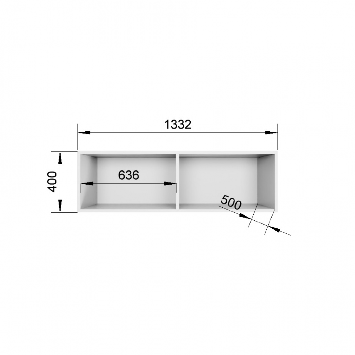 Ширина 1332 мм. Высота 400 мм. Глубина 500 мм.