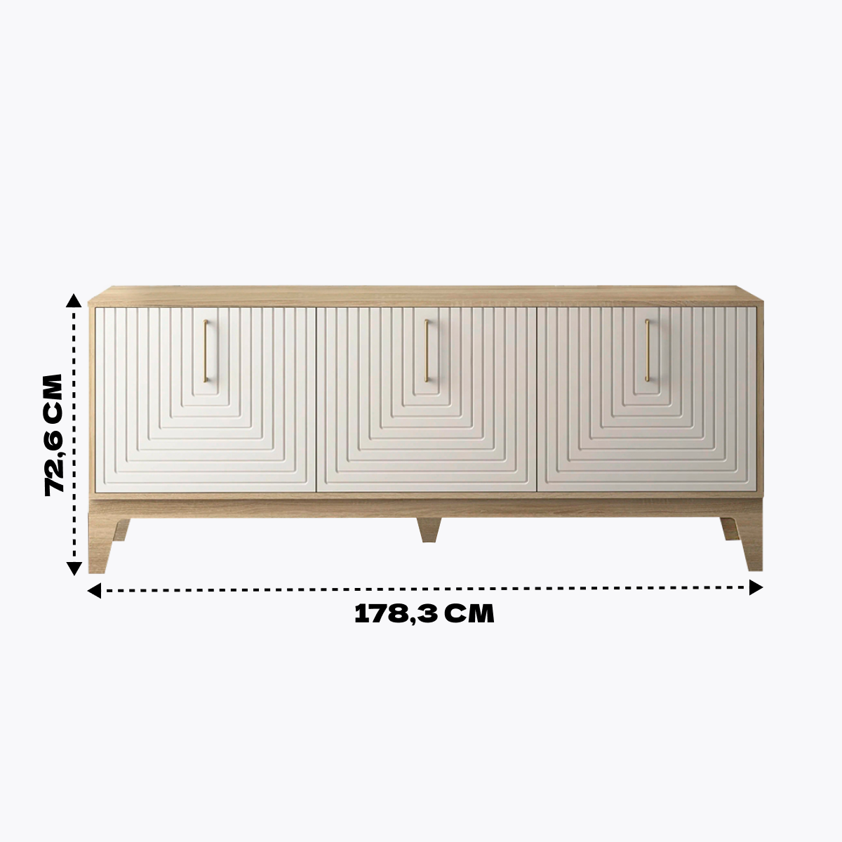 Комод состоит из трех секций, каждая секция имеет внутренню полку, разделяющая отсек на пополам. Корпус комода выполнен в цвете Дуб Сонома, фасады -Белый софт. Комод очень удобен, доступ к каждому отсеку оснащен отдельной дверцей. Комод Доминика идеально подойдет для любого помещения, будь то спальня, гостиная или детская. Размеры комода: 1780х726х450 (ШхВхГ).