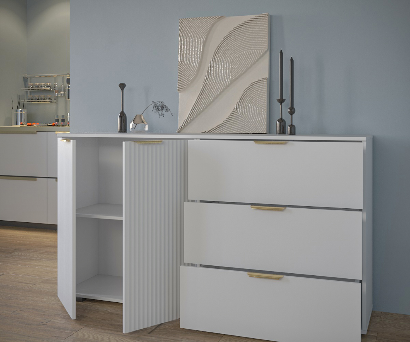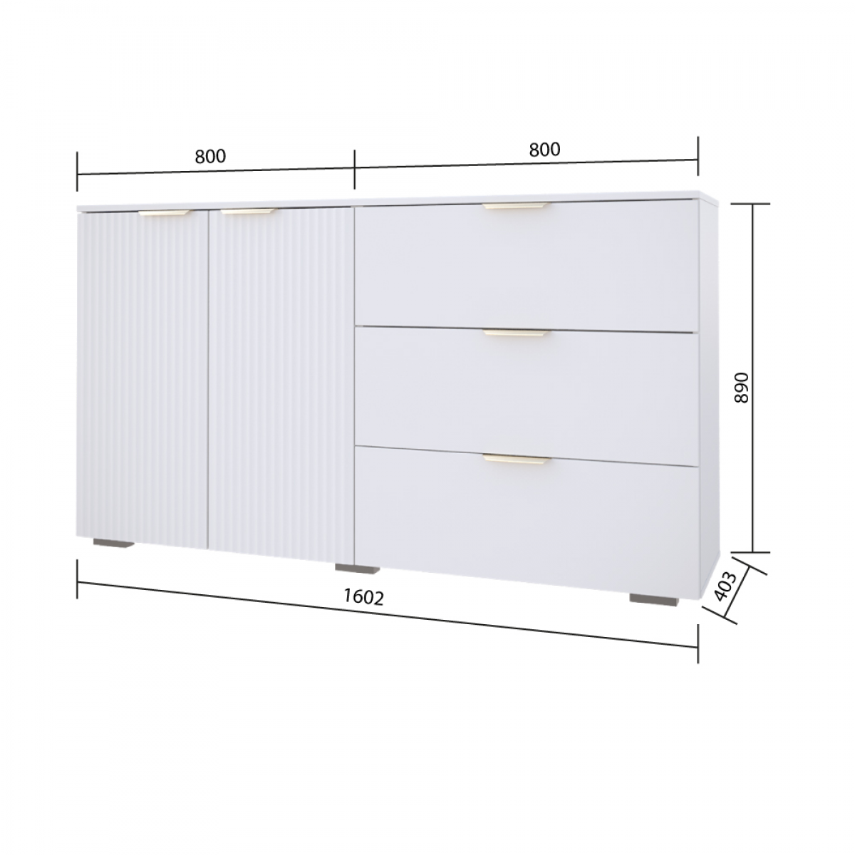 Комод Фиеста 1602х890х403 (Белый/ Белый Софт)