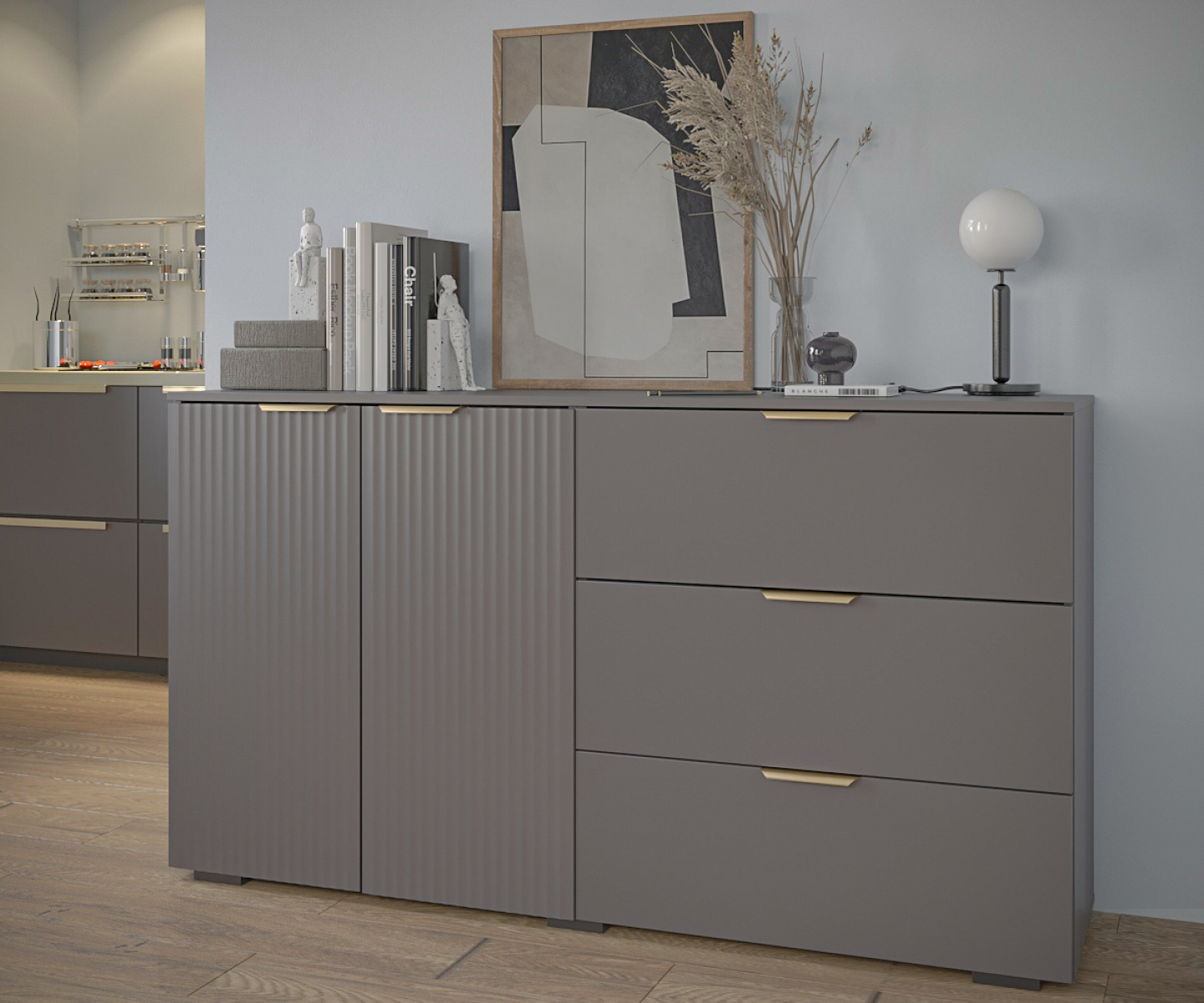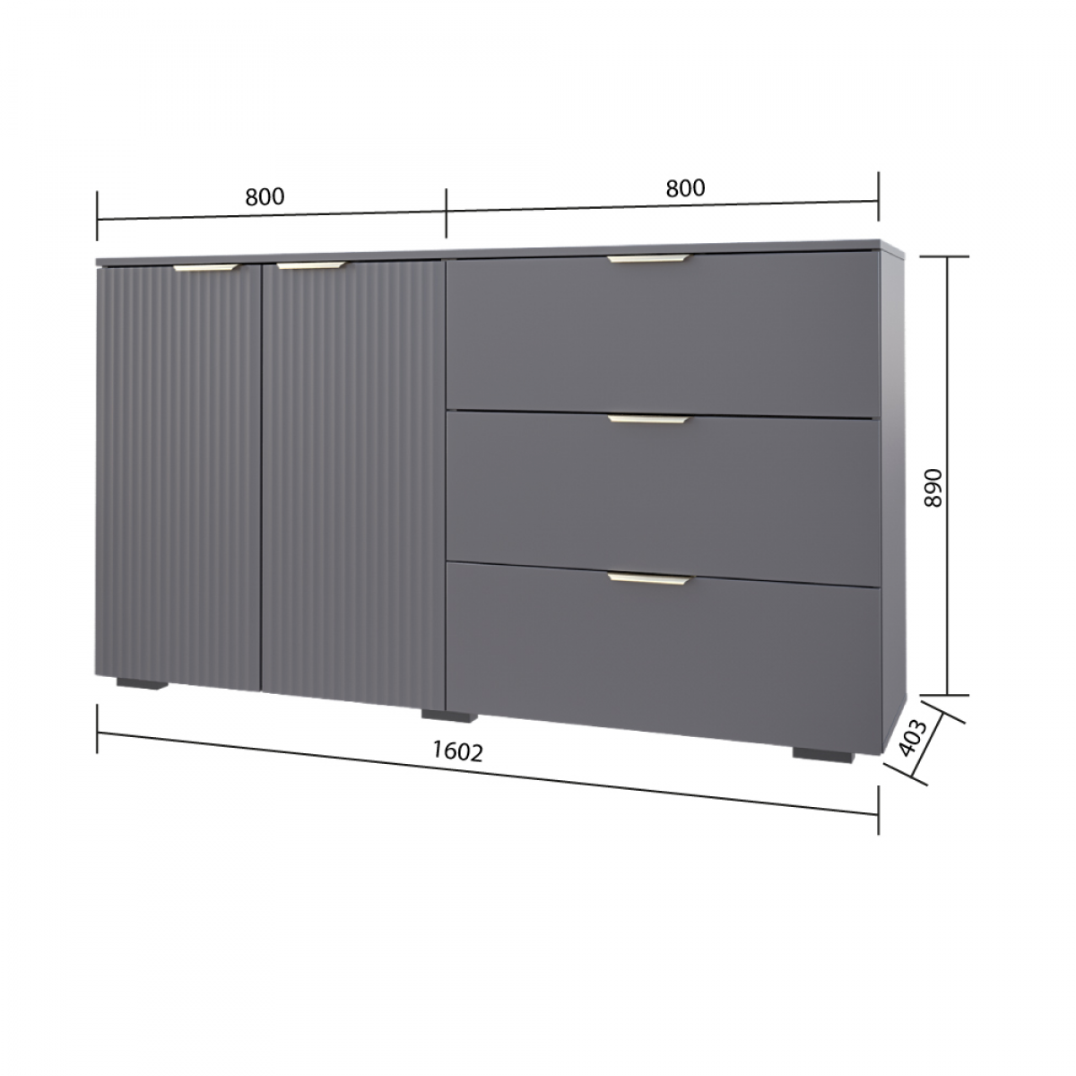 Комод Фиеста 1602х890х403 (Графит/ Графит Софт)
