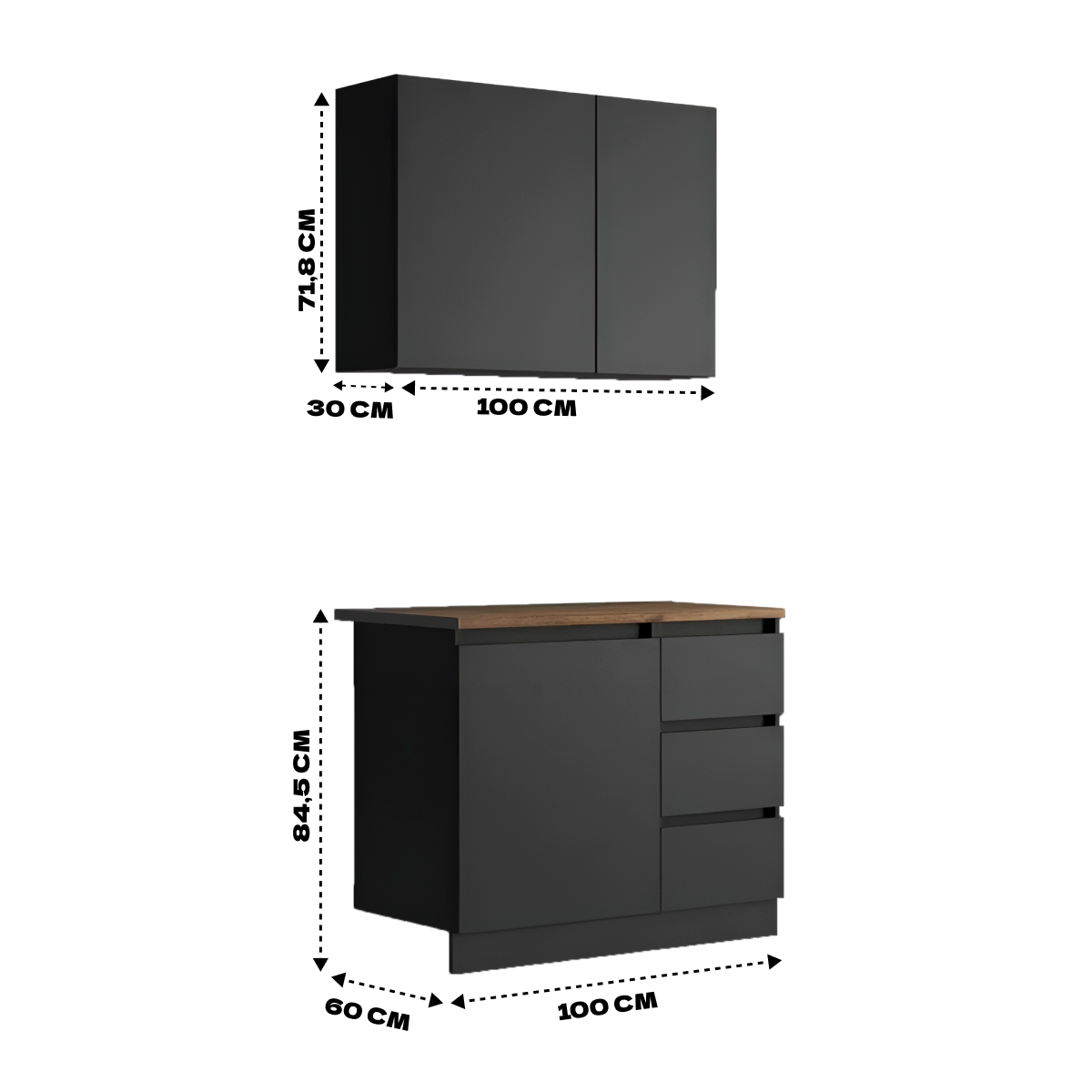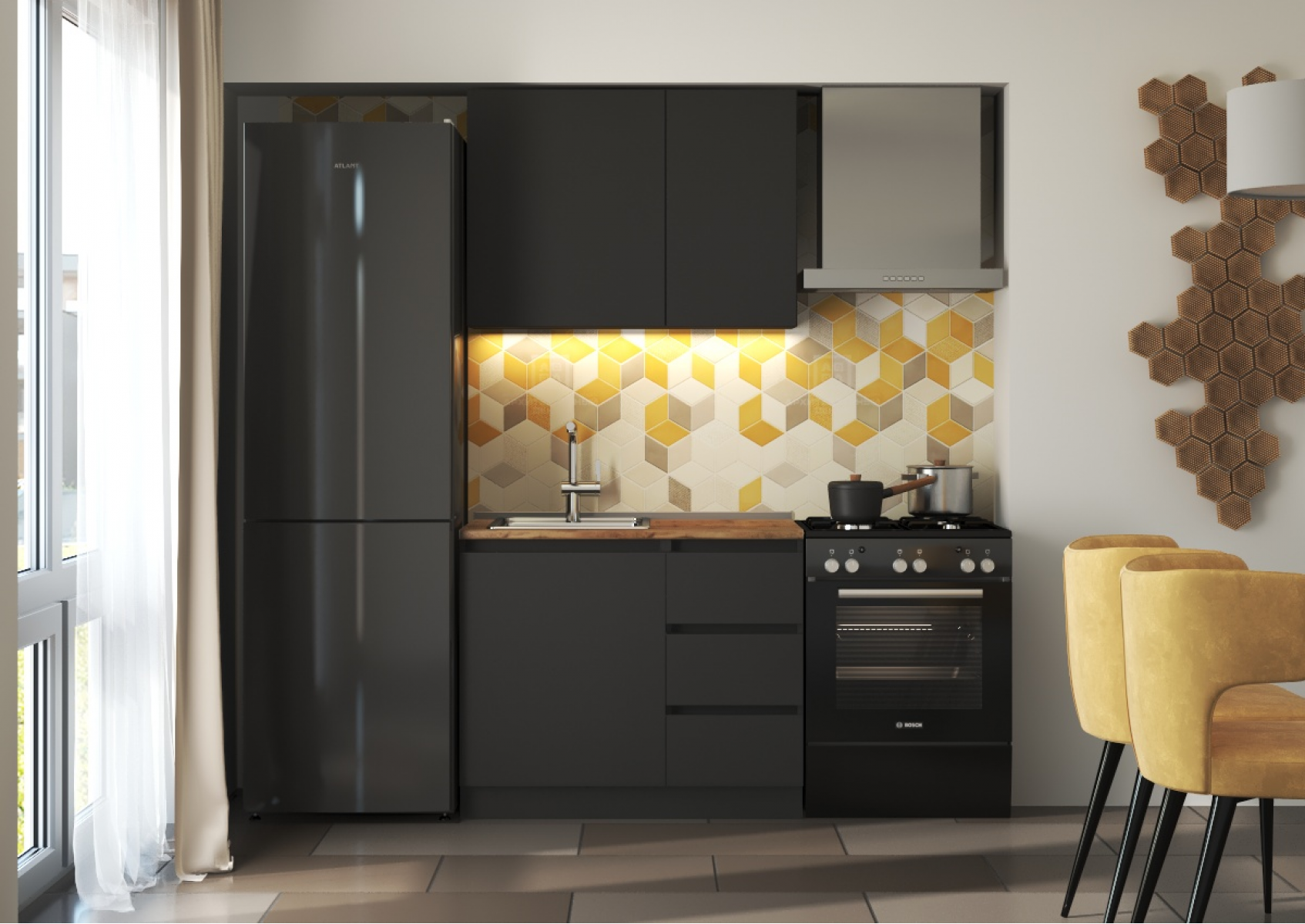 Кухонный гарнитур "Мальм" 1.0 (Графит, столешница Дуб Вотан