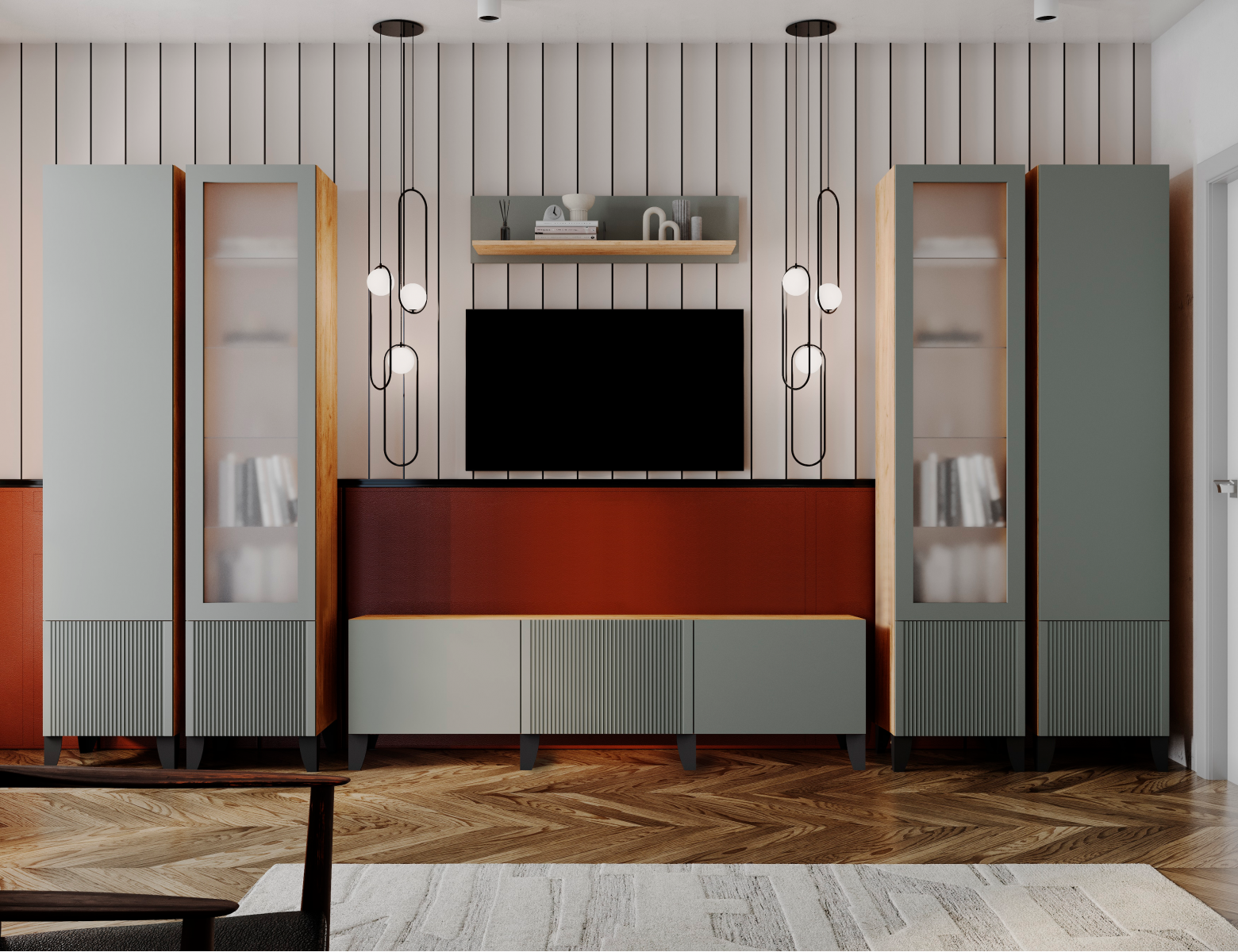 Набор Гостиная Рея Тумба ТВ напольная РГТ+Опоры для РГТ (дуб крафт золотой/гранит софт матовый)