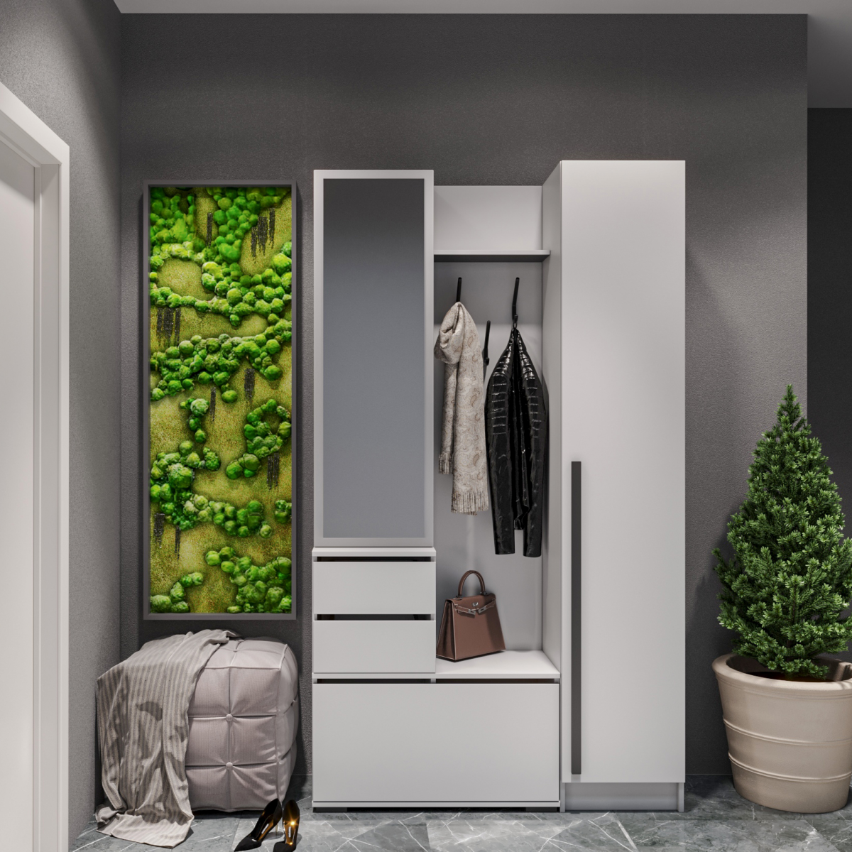Набор прихожая Бостон (вешалка В2 + пенал) — это стильный и практичный выбор для тех, кто ищет удобное и функциональное решение для своего дома или квартиры. Прихожая выполнена полностью в белом цвете, что придает ей элегантный и современный вид.