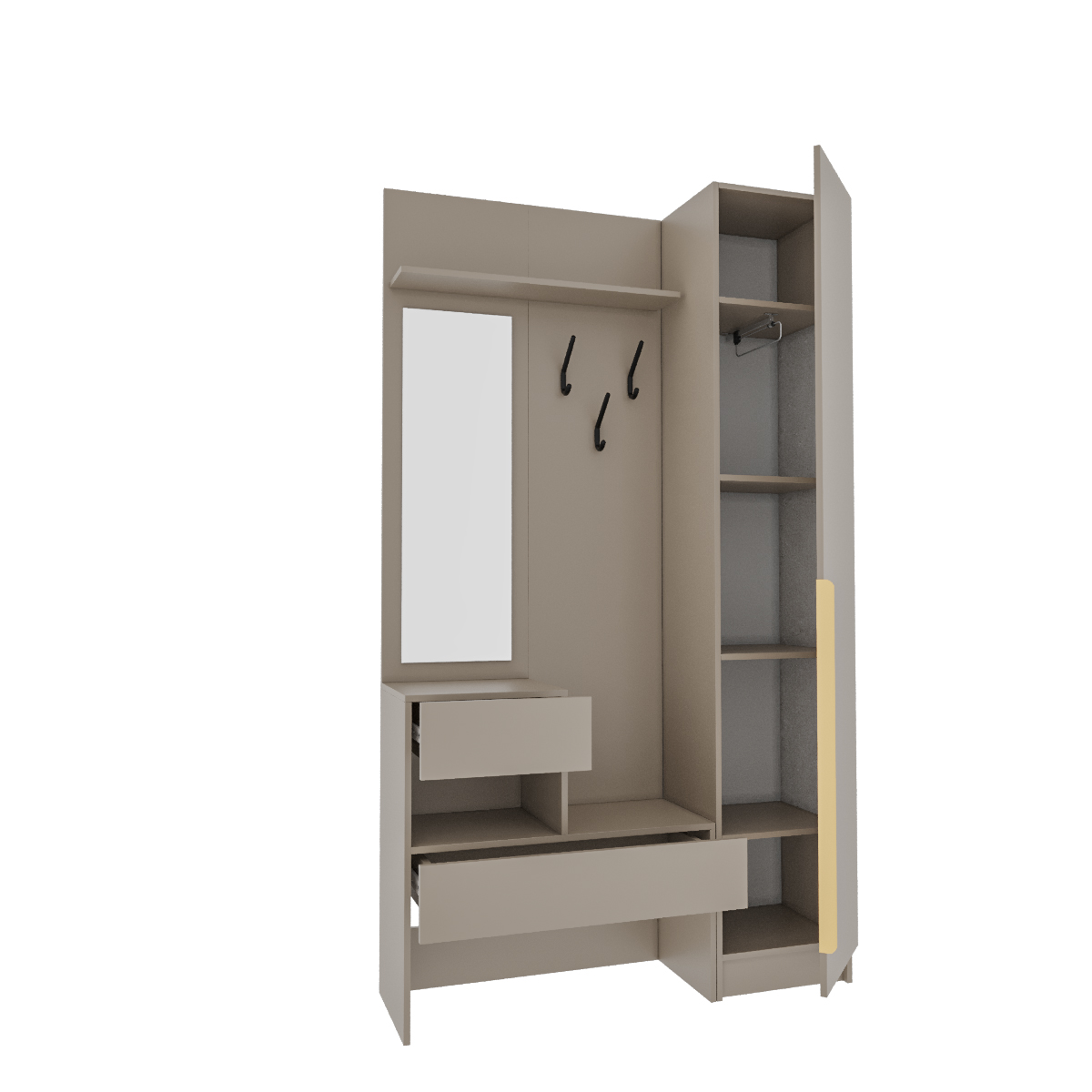 Набор прихожая Бостон (вешалка В1 + пенал П 400) — это стильный и практичный выбор для тех, кто ищет удобное и функциональное решение для своего дома или квартиры. Прихожая выполнена полностью в бежевом цвете, что придает ей элегантный и современный вид.
