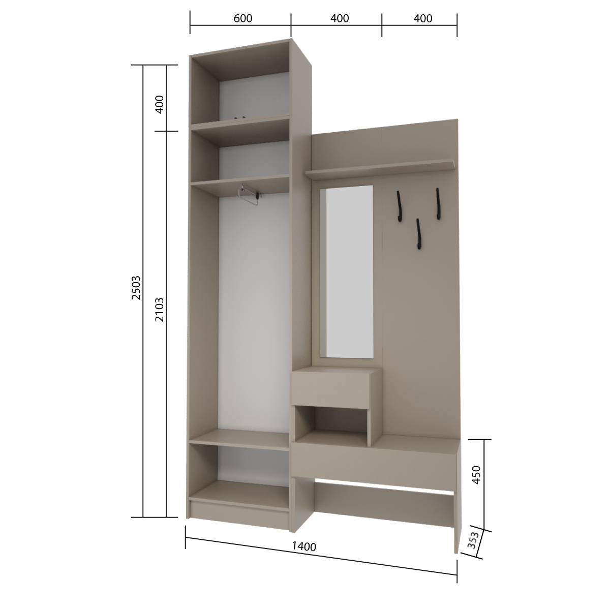 Набор прихожая Голд Бостон(вешалка В1 + шкаф Ш 600 + антресоль А 600)(Бежевый(Глинянный/серый)