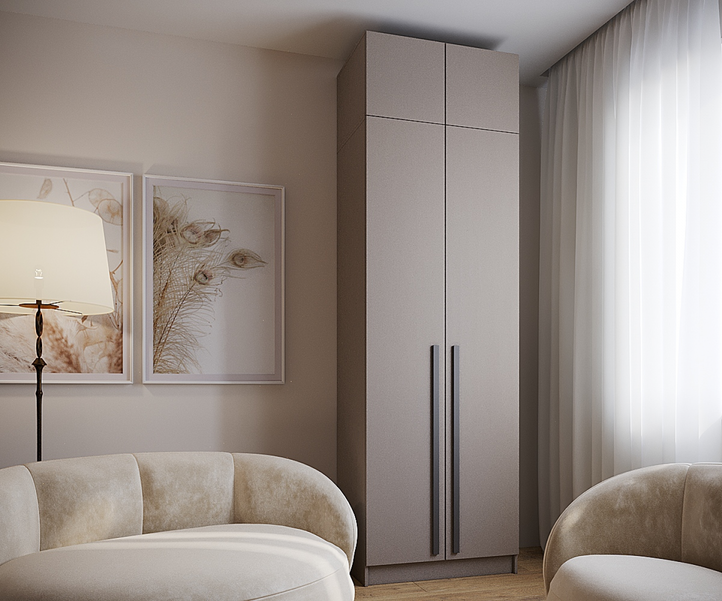 Набор Шкаф Бостон 800+антресоль бежевый / глиняно серый (шкаф+антресоль)