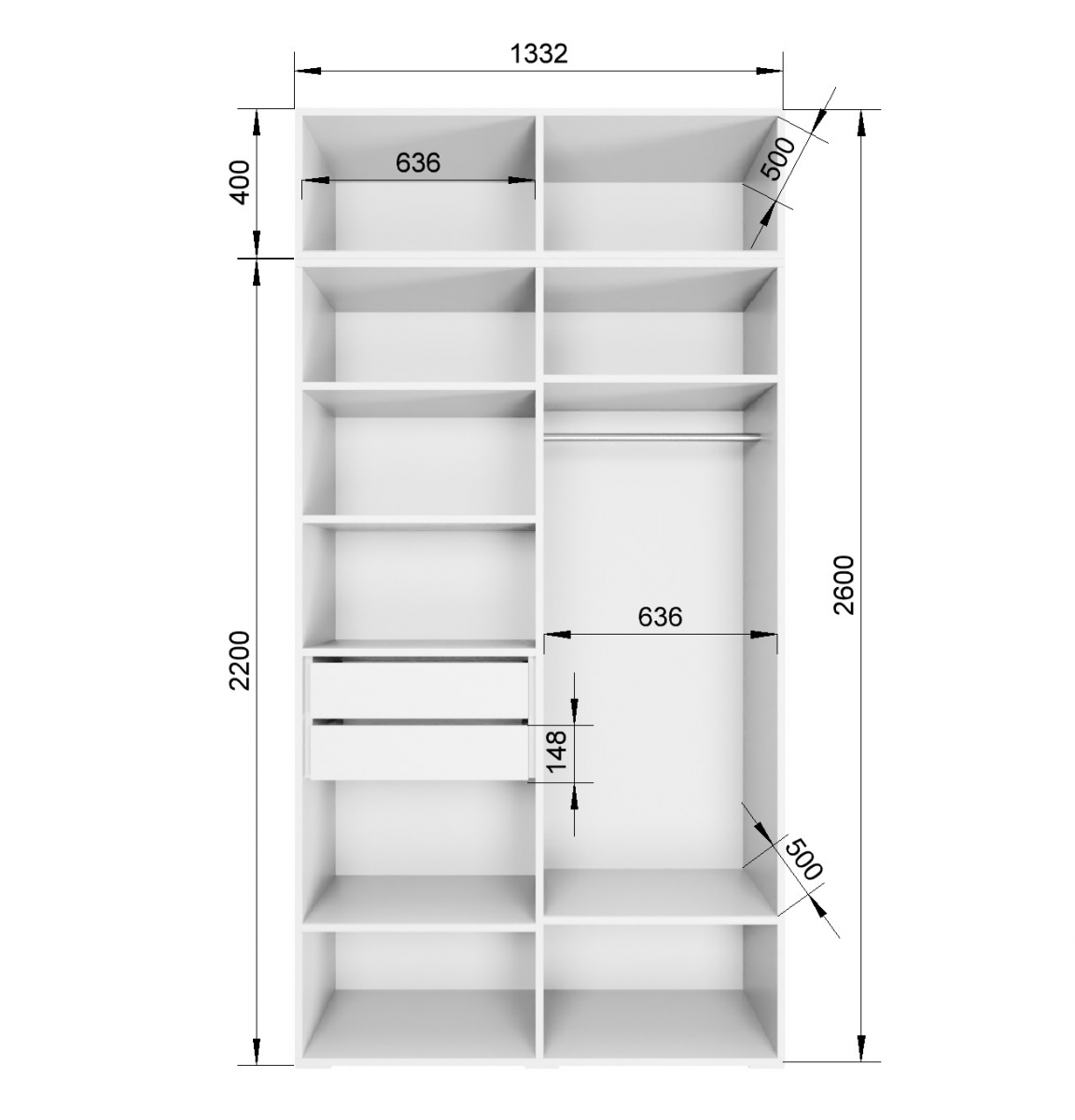 Размер: 1332х2600х500