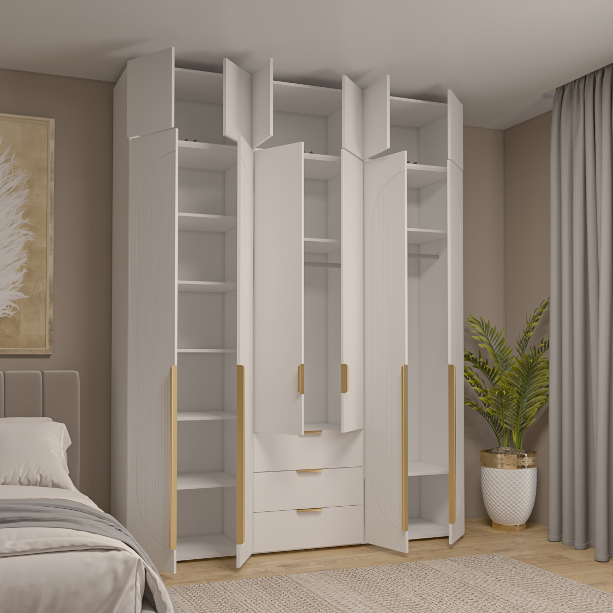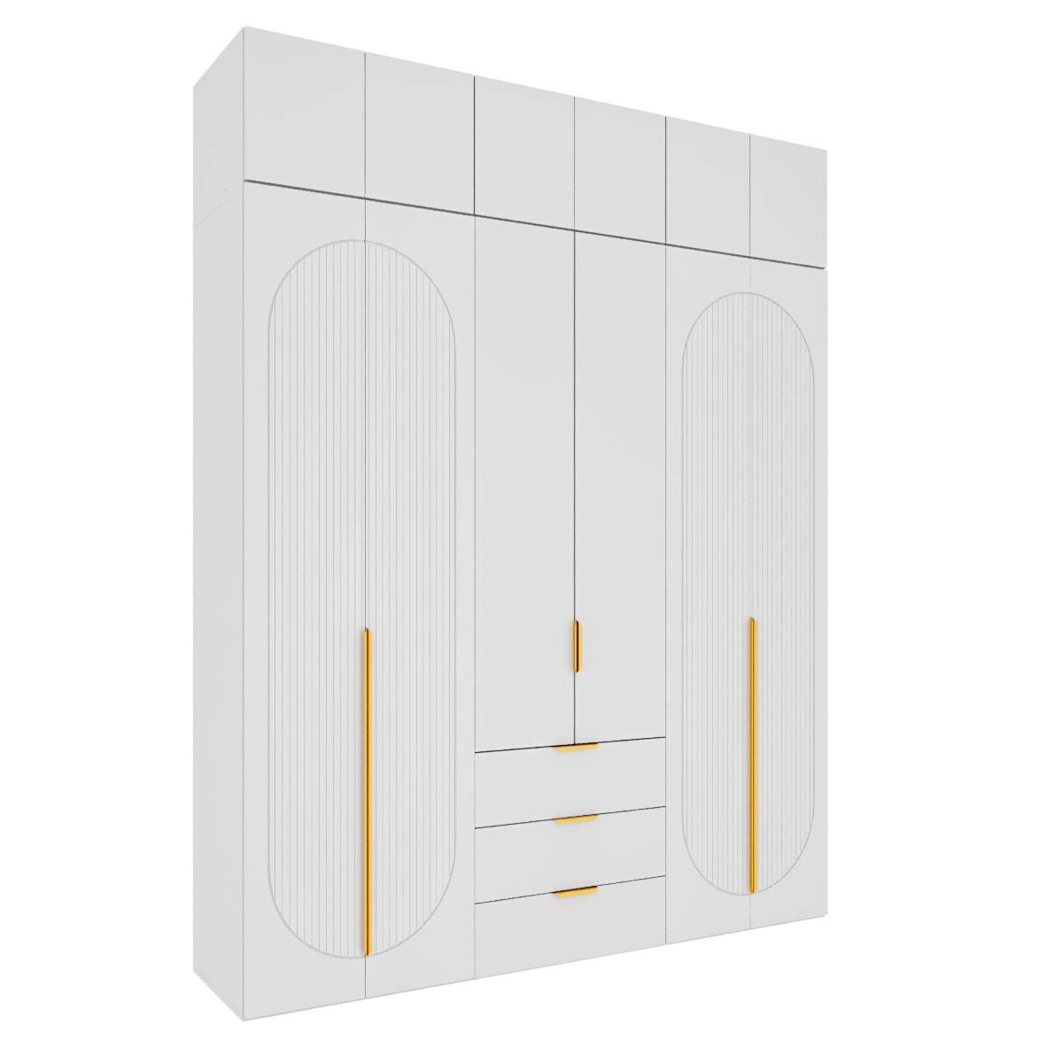 Шкаф "Фиеста" с фасадами из МДФ в нежном оттенке "Белый софт" и корпусом из прочного ЛДСП – идеальное решение для организации хранения в спальне или прихожей. Этот вместительный, 6-ти створчатый распашной шкаф с габаритами 200×220×50 см (ШхВхГ) предлагает оптимальное сочетание элегантного дизайна и практичной функциональности.